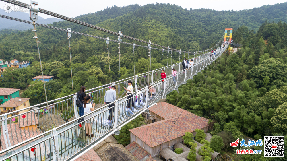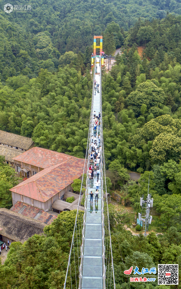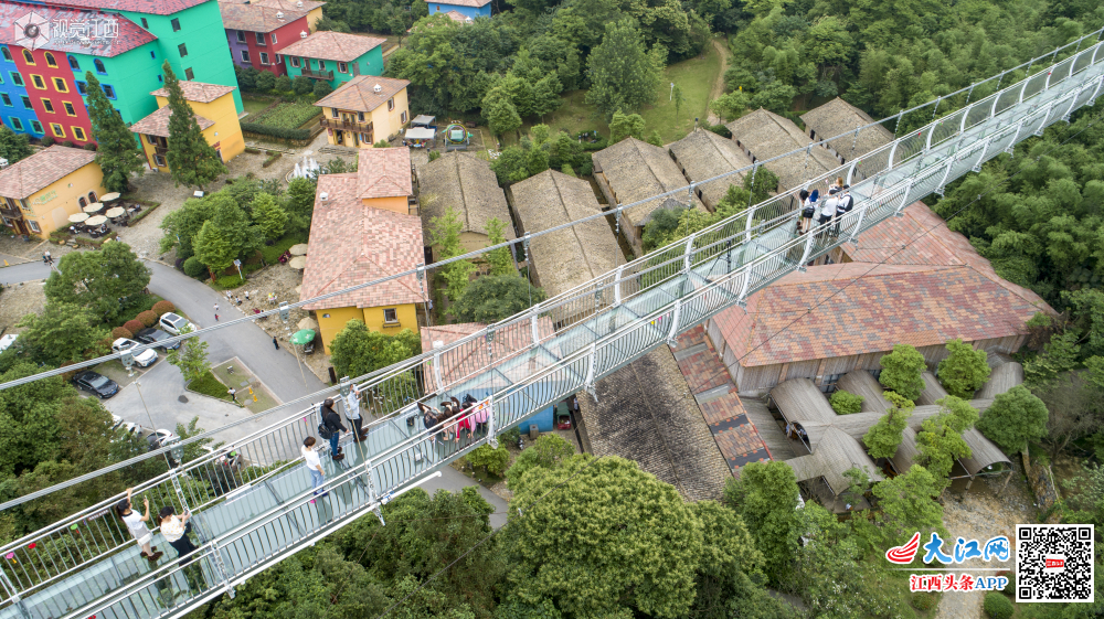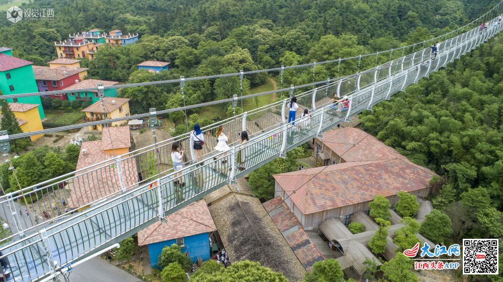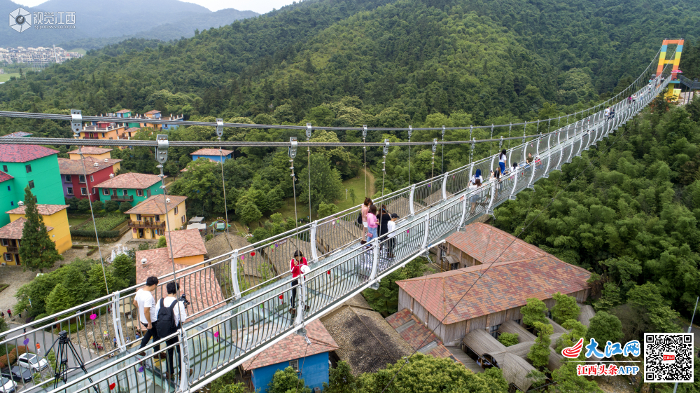 近日,新余市首座高空玻璃栈桥向游客开放。该桥位于新余市仙女湖区彩色村内,桥长166米,距离地面高40米,桥中间玻璃下还添加了光电技术,游客踩上去发出光和声,给人造成刺激感觉,每天吸引众多的市民前往观赏体验。