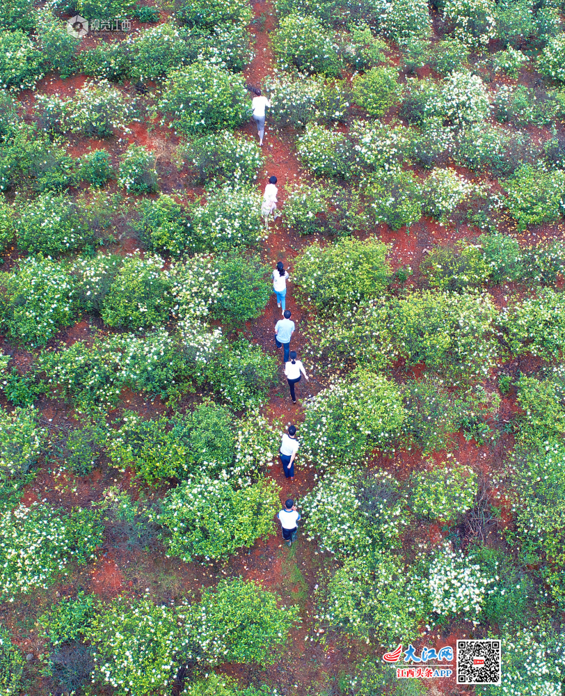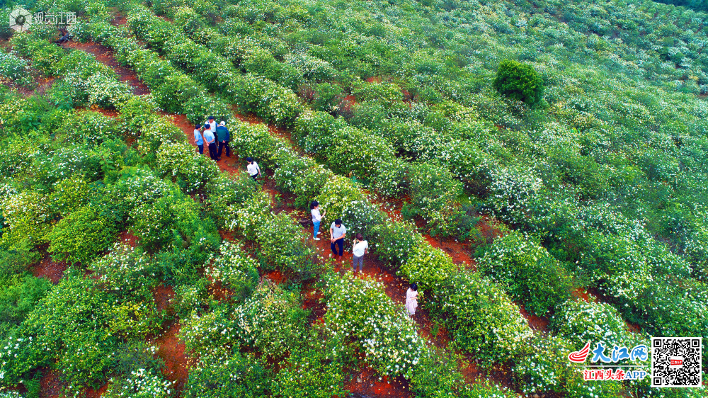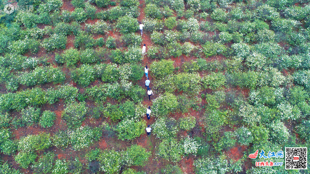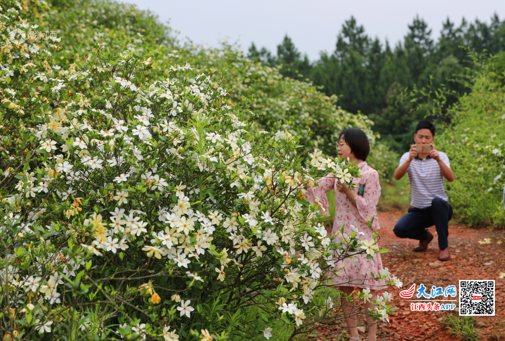 初夏时节,泰和县上模乡1000多亩栀子花尽情盛开,漫山遍野的栀子花芬芳四溢,香飘山谷,沁人心脾,令人陶醉,吸引了游客前来赏花拍照游玩。