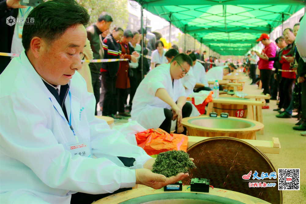 据介绍,本次“狗牯脑杯”全国绿茶手工制作大赛作为2019年第三届中国(南昌)国际茶业博览会的系列活动之一,此次比赛来自四川、贵州、浙江、湖南、广东、江苏、湖北等7个省,及江西省九江、上饶、景德镇、赣州、宜春、吉安等6个市区62名狗牯脑茶炒制高手们同场竞技,比赛以狗牯脑群体种一芽一叶的茶树鲜叶原料为主,每位参赛选手分发1.2斤左右。比赛成绩以参赛选手所制成品茶综合品质评分为主,实际操作比赛评分为辅,设选手奖和组织奖,选手奖包括茶王奖、特别金奖、金奖和优质奖四个级别,在24日公布大赛选手奖上,江西井冈老仙茶天然食品有限公司参赛队的选手薛群英喜获茶王奖,江西遂川王跃生、贵州李亚林2人获特别金奖,江西遂川张春艳、古俊旺、浙江毛杨新3人获金奖 ,广东陈红华、四川高华松等全国各地28人获优质奖。