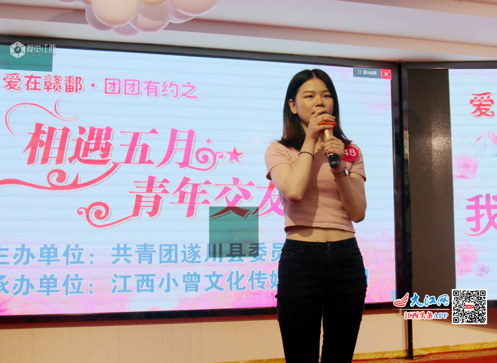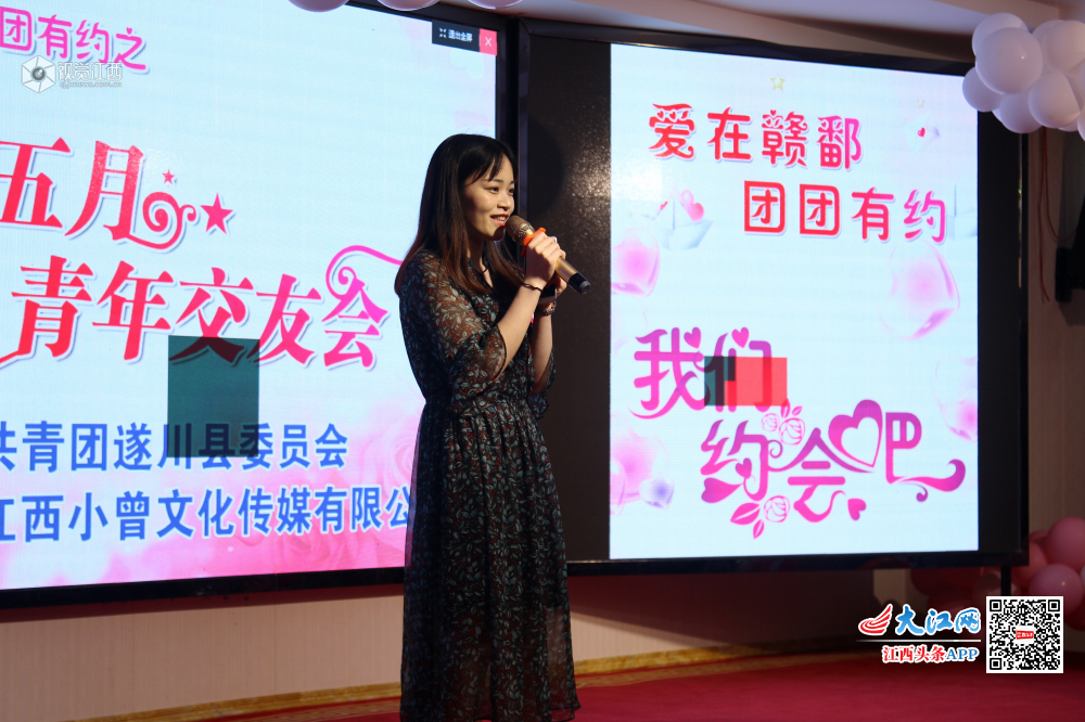 2019年5月25日,江西省遂川县举行单身男女青年相遇五月交友会。该县发挥团青组织服务青年的作用,拓宽全县单身干部职工、社会各界自由职业者沟通交流渠道,乐当“红娘”组织“爱在赣鄱·团团有约”之相遇五月青年交友会,现场100多名单身男女青年通过“推销”自己、互动游戏,相互在真诚沟通基础上增进相互了解,在积极参与活动中传递大爱真情,成就幸福美满姻缘。