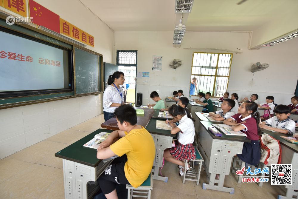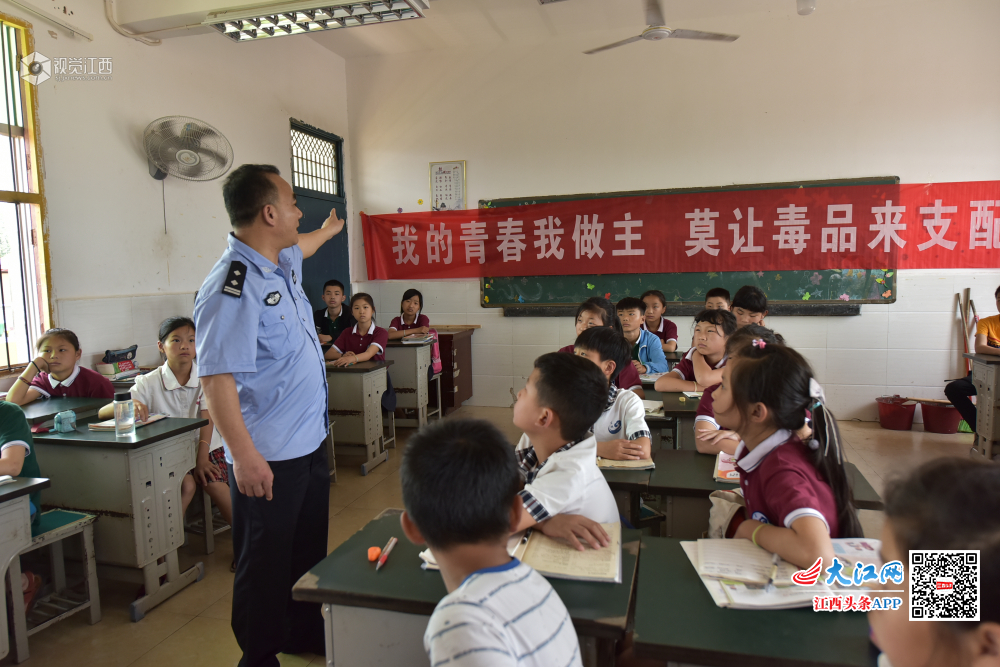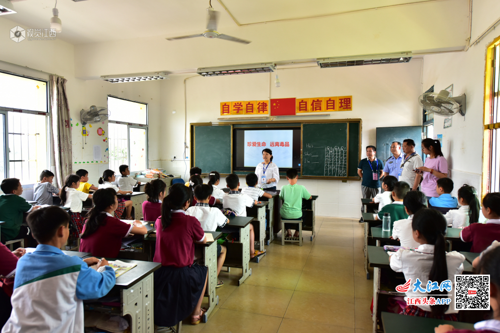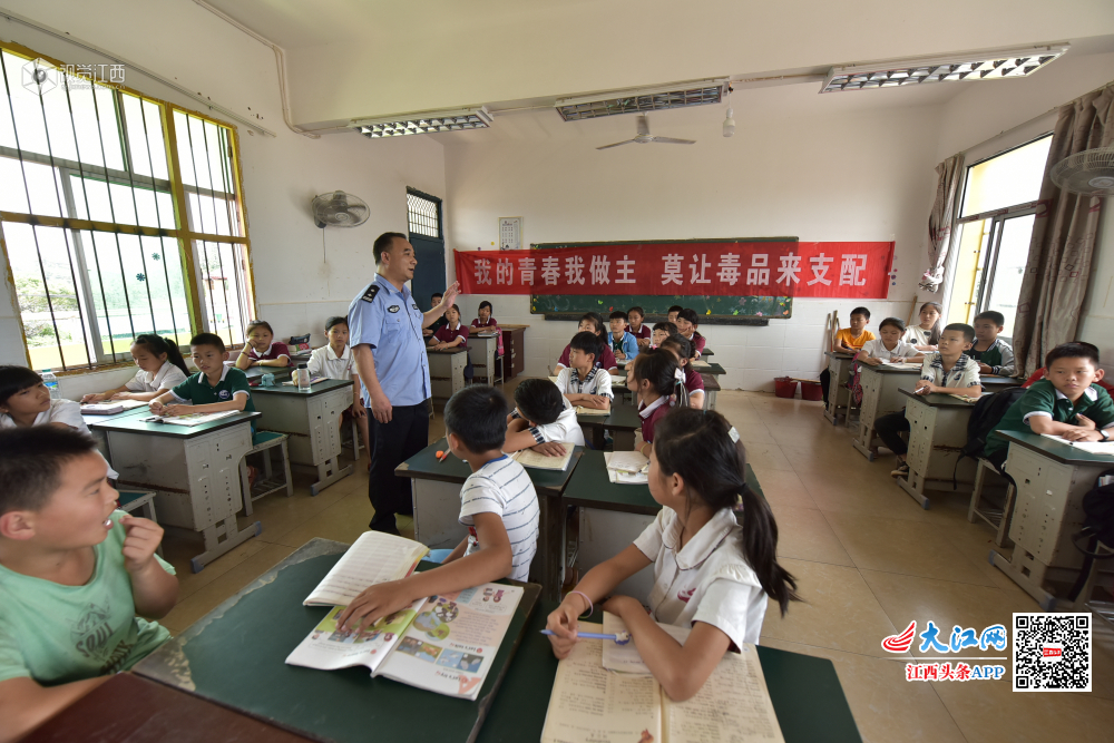 5月27日,扬子洲镇6.26社区戒毒康复工作站的工作人员和扬子洲镇派出所干警一行数人,带着禁毒宣传展板、宣传折页等资料来到校园,走进课堂,零距离给小学生们进行禁毒宣传。