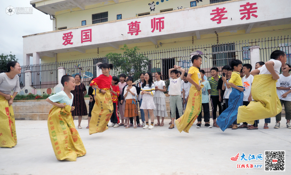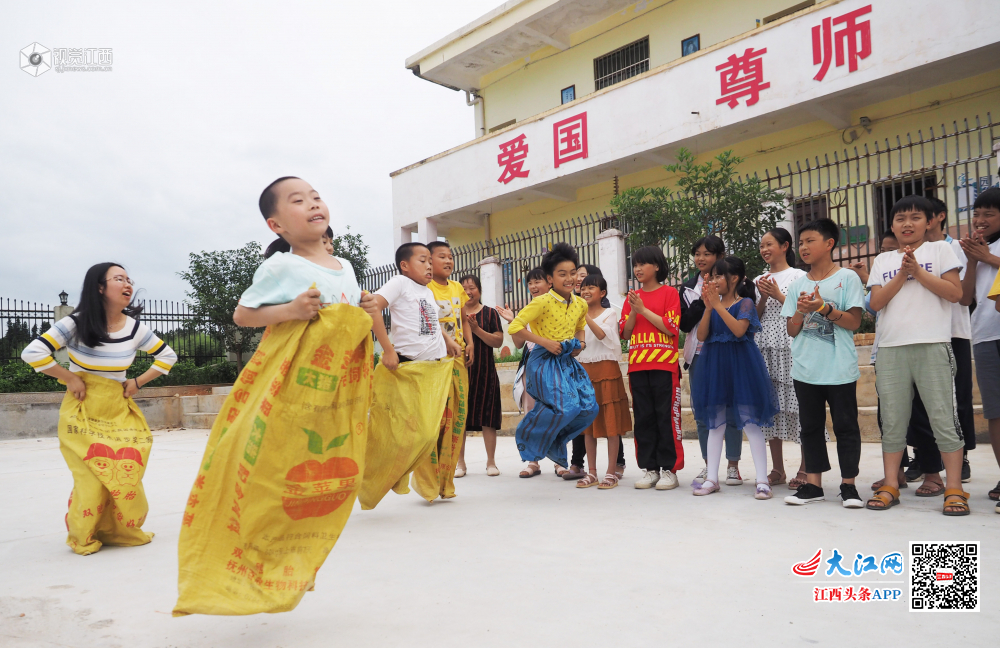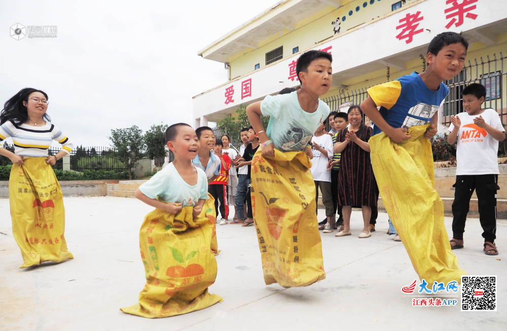 5月29日,在江西省南丰县东坪乡中心学校安排下,该乡最偏远的邱坊村教学点唯一的学生涂喜龙和傅木兰老师第一次走出大山,与中心学校的师生一起参加玩“袋鼠跳”等丰富多彩的文娱节目,开开心心迎“六一”。