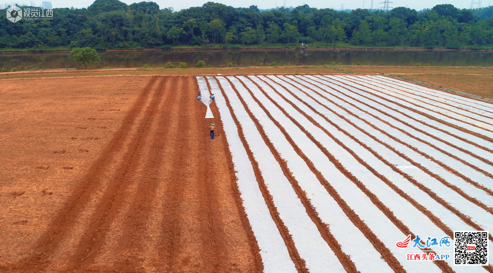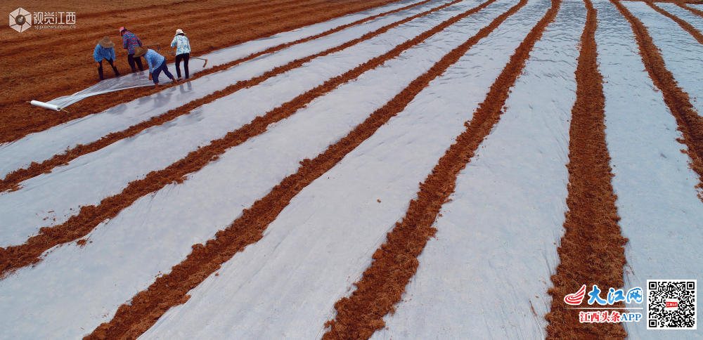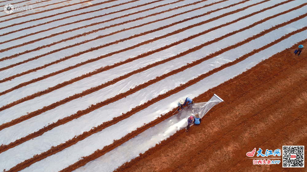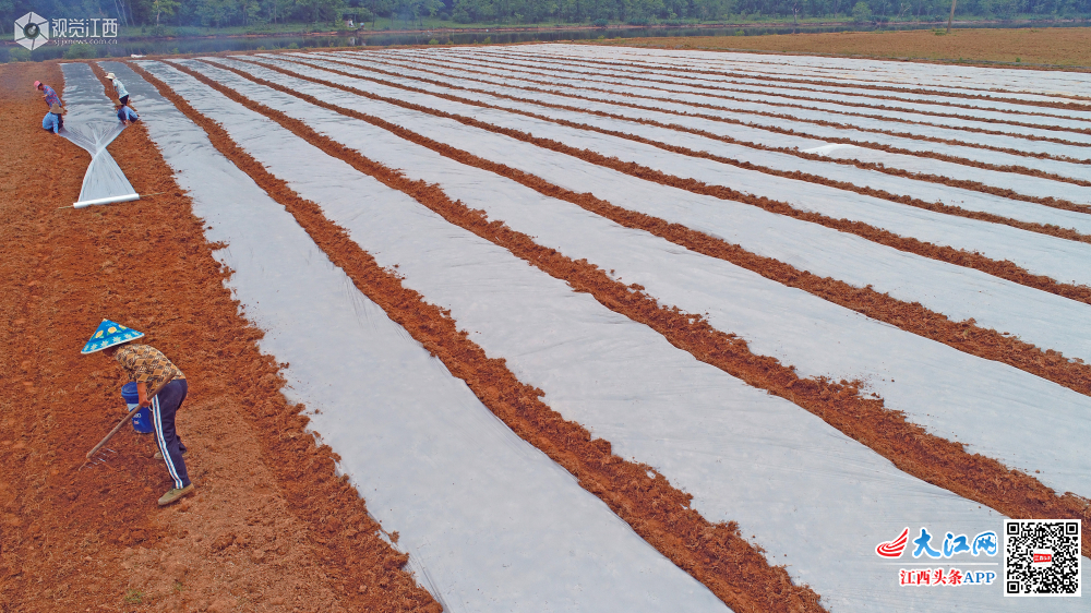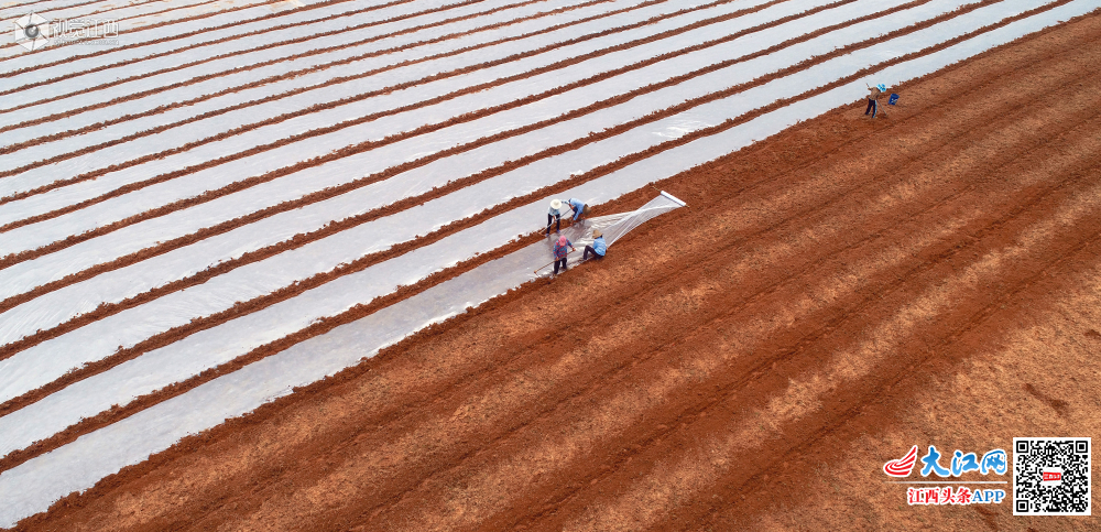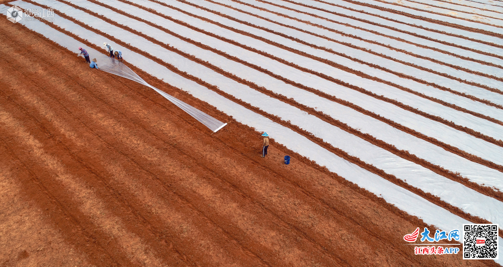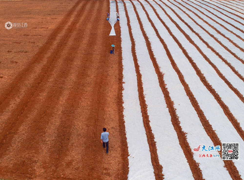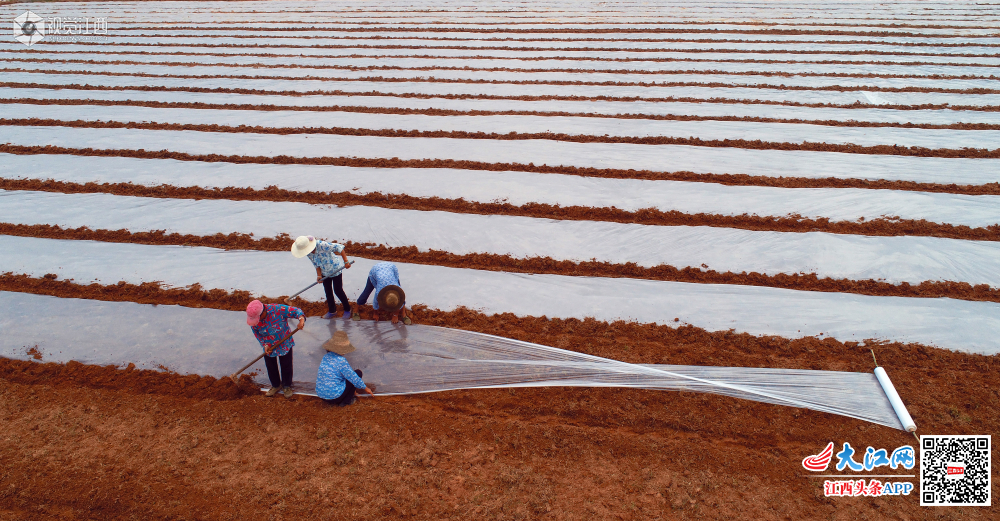 5月30日,在江西省吉安市泰和县塘洲镇康东生态西瓜种植基地,农民在进行薄膜覆盖劳作,准备播种特色西瓜,夏日田园一派繁忙景象。近年来,泰和县大力发展生态农业,推广特色农产品种植,实现农民增收,助力脱贫攻坚。