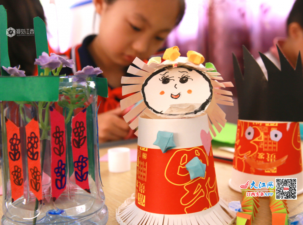 2019年6月4日,江西省泰和县第二实验小学开展“创意手工,变废为宝”主题活动,孩子们利用纸杯、易拉罐、烟盒、光盘等日常生活中的废旧材料,通过巧手创作、信手涂鸦,制成笔筒、帆船、台灯、书屋、装饰画等一件件富有创意的环保手工作品,教育孩子们从小树立环境意识,倡导低碳生活理念,迎接“世界环境日”的到来。