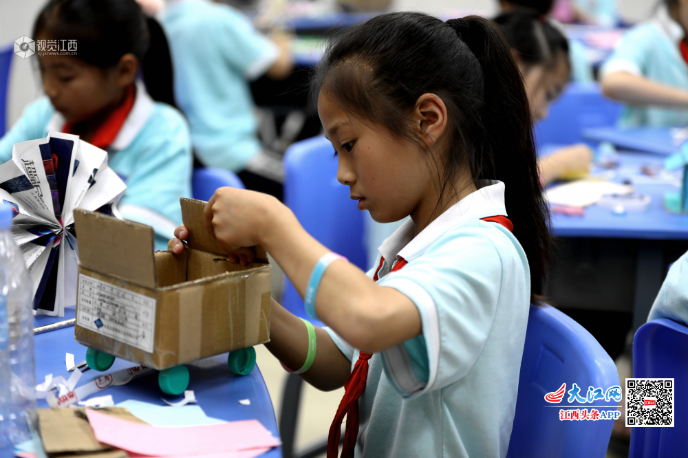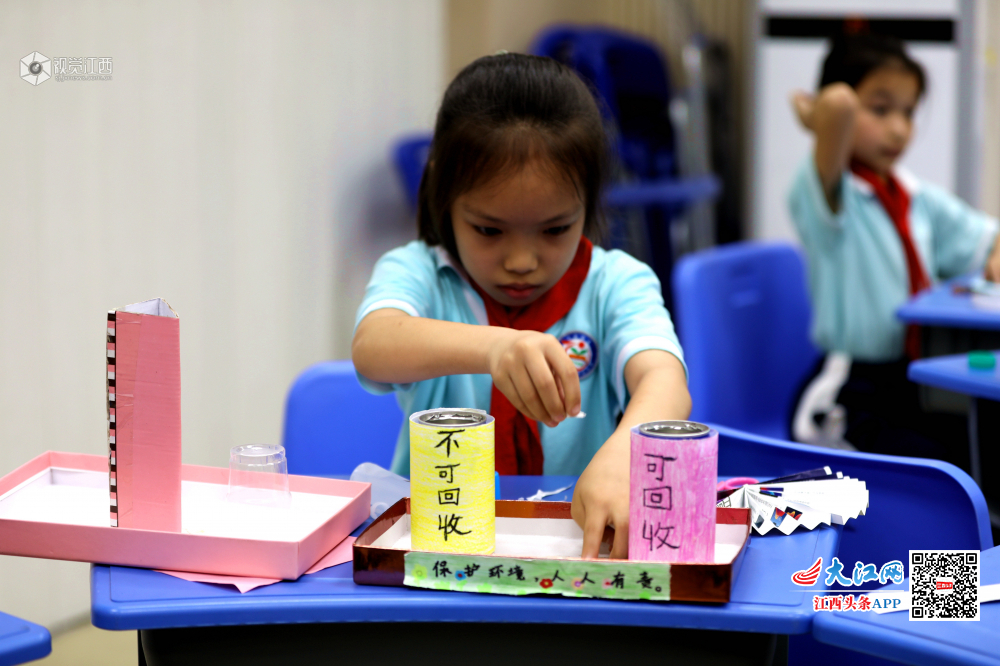 6月4日,在第48个世界环境日来临之际,分宜县第三中心小学开设“美丽中国  我是行动者”环保特色小课堂,通过让同学们利用生活垃圾、废弃物等为原材料,开动脑筋,巧手创作加工出分类垃圾箱、照相机、望远镜、物流车等各种艺术品,培养了同学们良好的生活习惯,增强节约和环保意识。