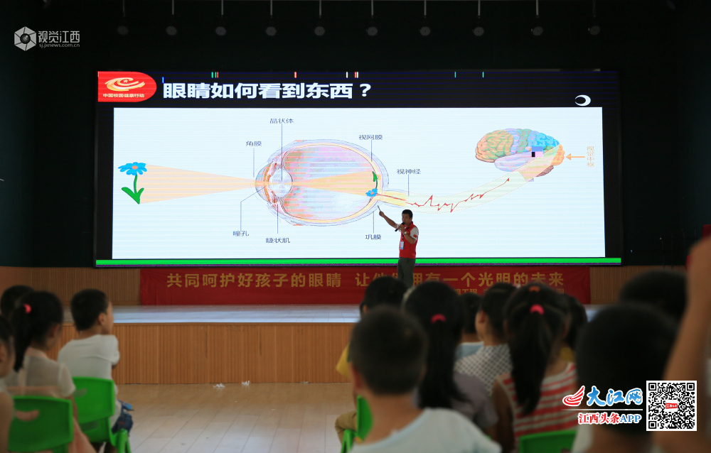 6月6日,第24个全国爱眼日,护眼科普志愿者走进江西省吉安市泰和县机关幼儿园,与孩子们一起分享爱眼护眼知识,让他们从小养成科学用眼的好习惯。