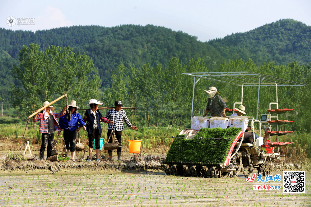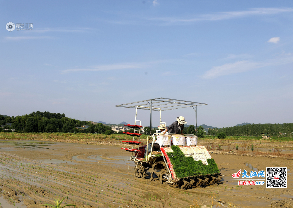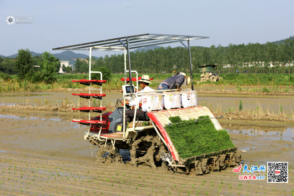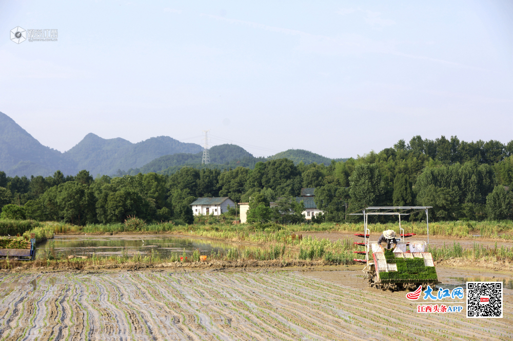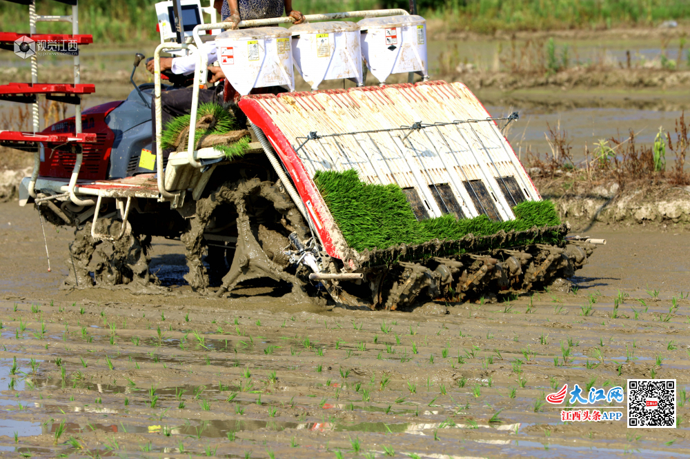 芒种节气到,机械插秧忙。连日来,分宜县双林镇集贤村水稻种植大户黄园珠驾驶插秧机在千亩平整的水田中来回穿梭,插秧过后的绿油油的秧苗把田野装点得生机一片。目前,分宜县数十万亩水稻插秧作业生产掀起了新高潮。