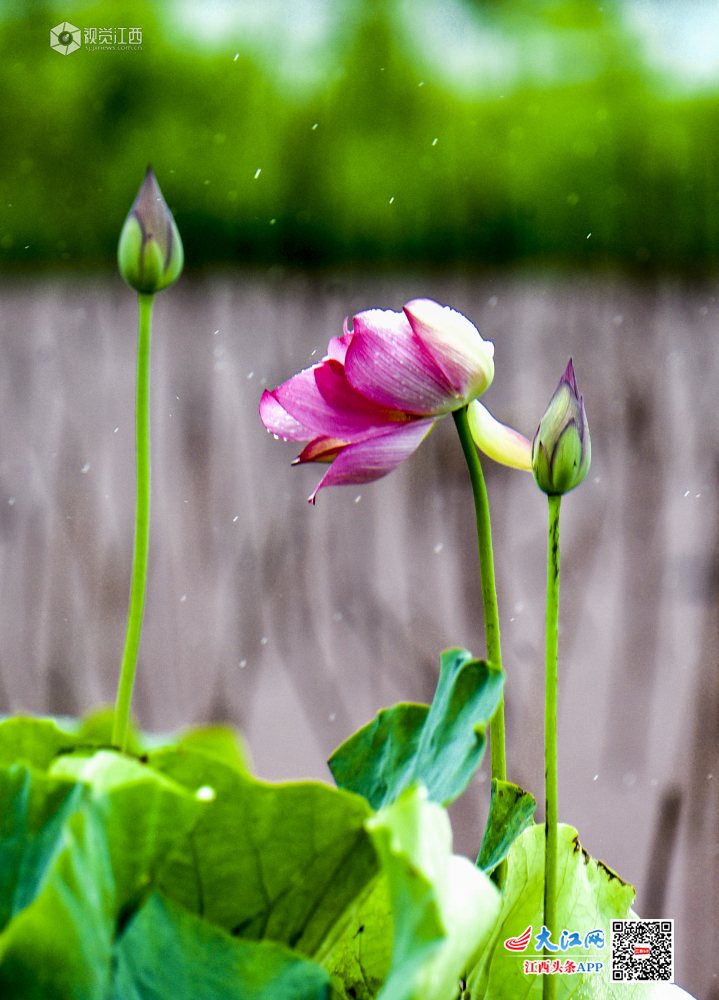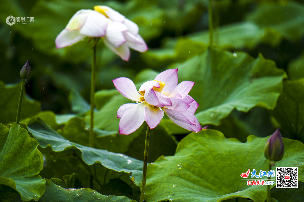 雨后的荷花,显得愈发粉嫩水灵。雨中赏荷别有一番情趣,不少游客和摄影爱好者冒雨前来赏花留影。