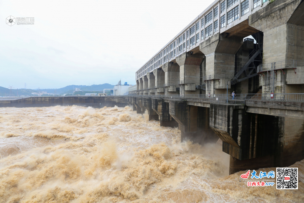 受连日来强降雨影响,赣江干流多站发生超警戒洪水。万安水电厂按照江西省防汛抗旱指挥部下达的调度命令,不断加大下泄流量,确保安全度汛。