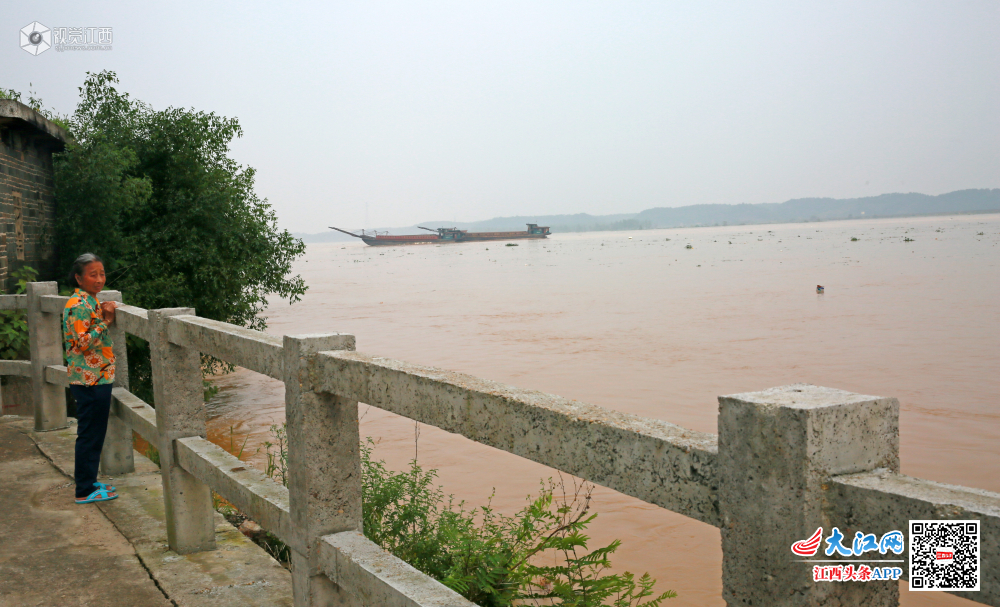 受连日暴雨影响,赣江水位持续上涨。2019年6月11日,赣江泰和段水位不断逼近警戒线。