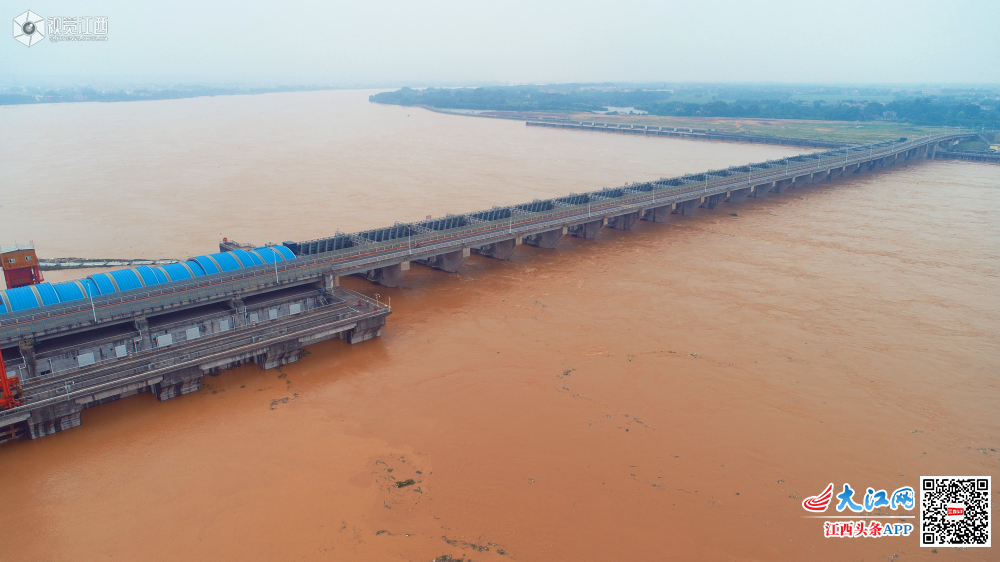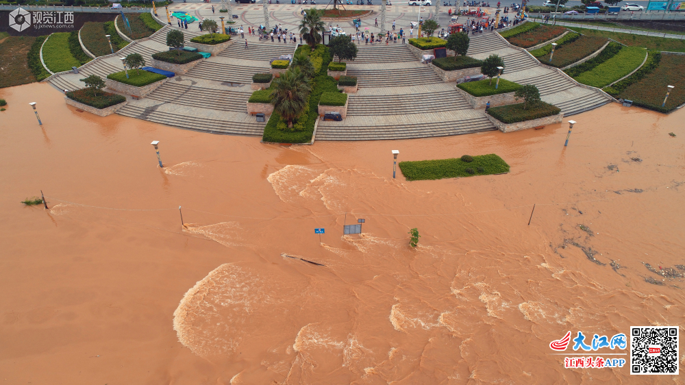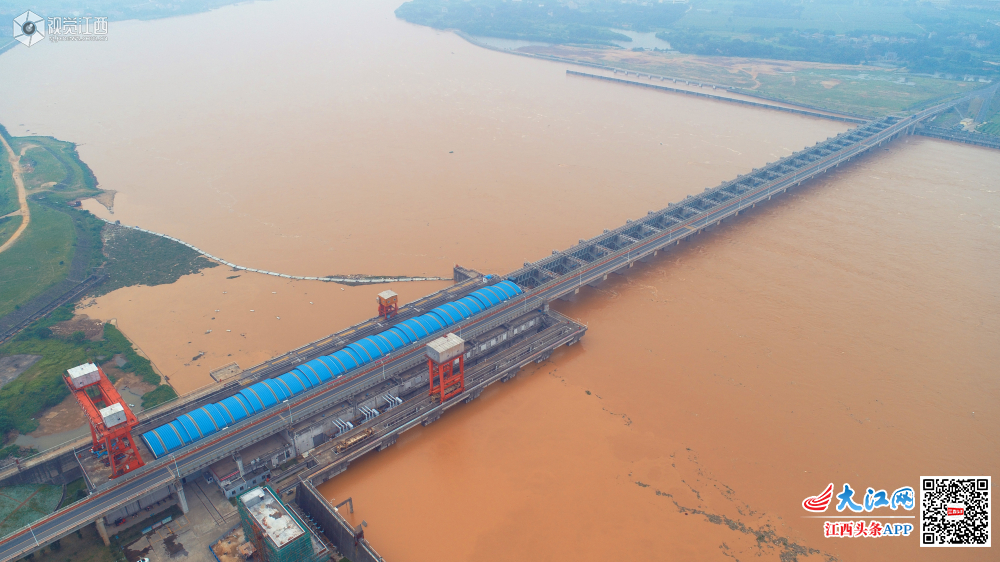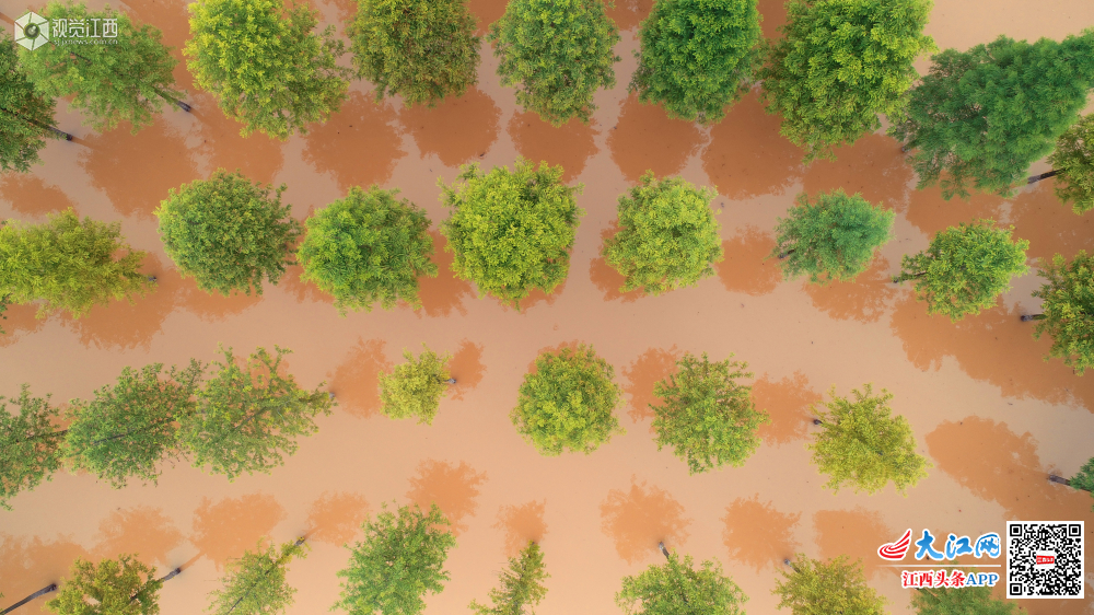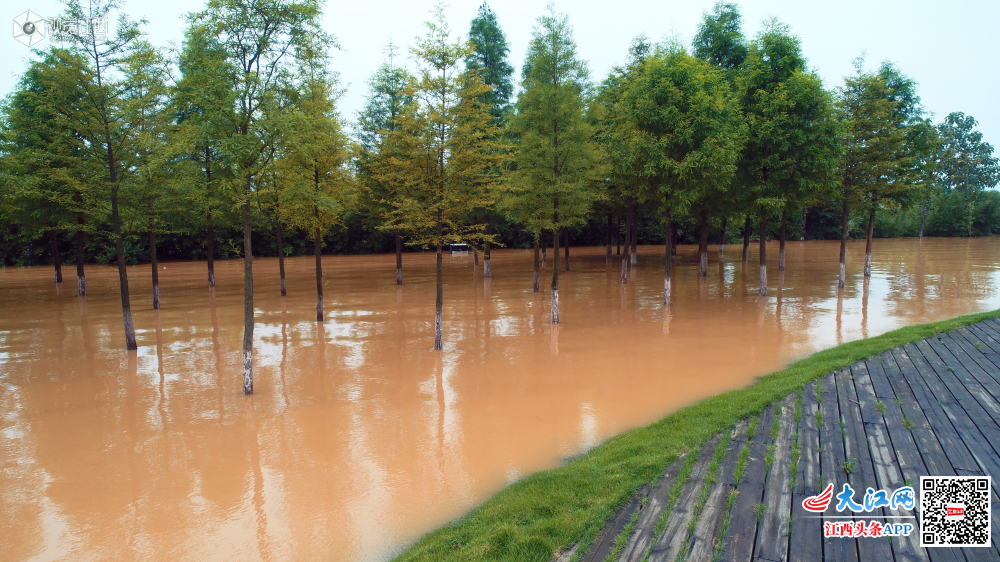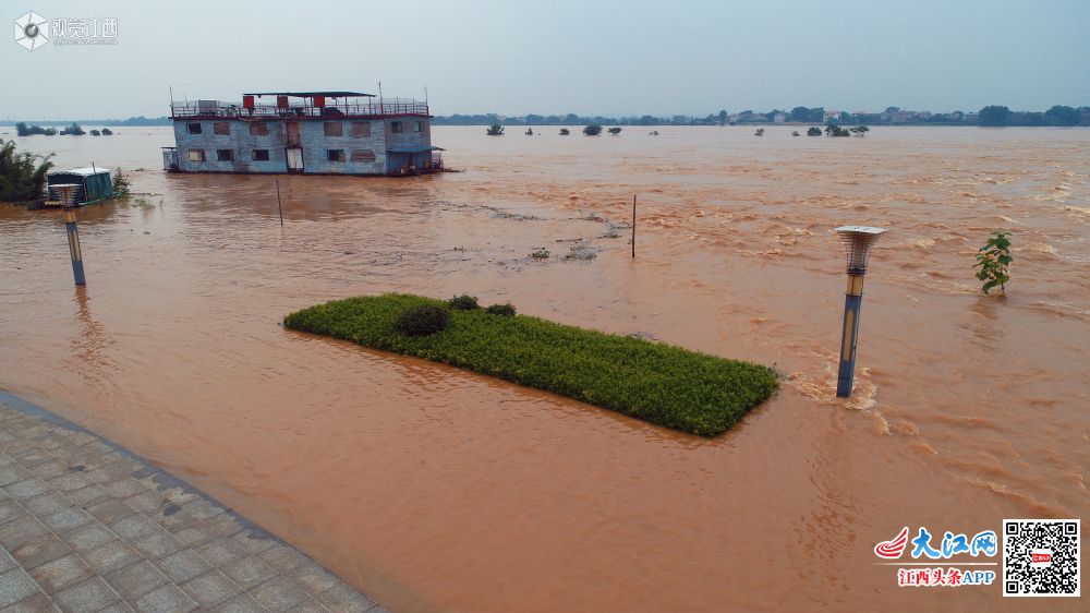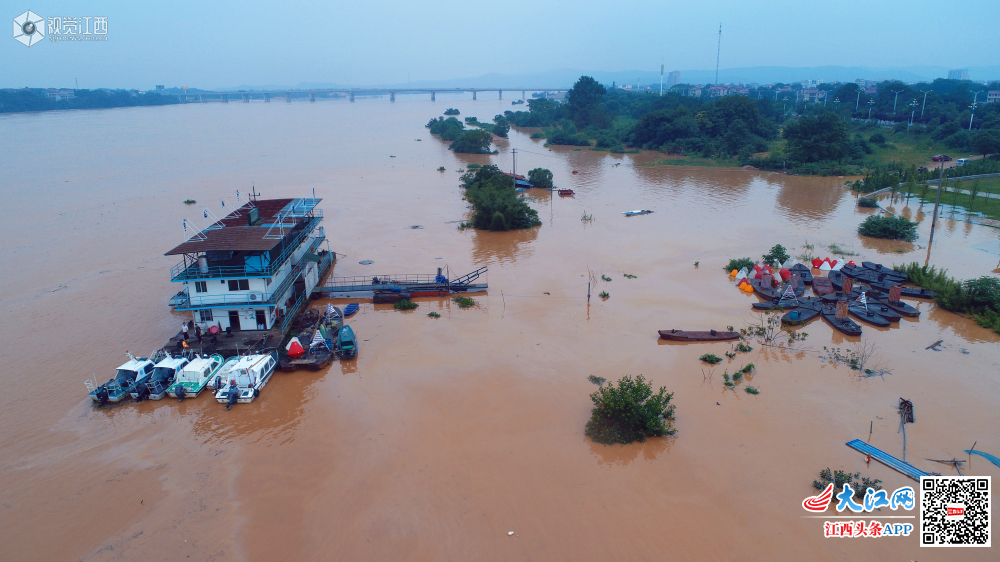 6月12日,航拍江西省吉安市泰和县赣江段,受持续强降雨影响,赣江水位上涨,已超过警戒线,赣江岸边水上设施被淹。