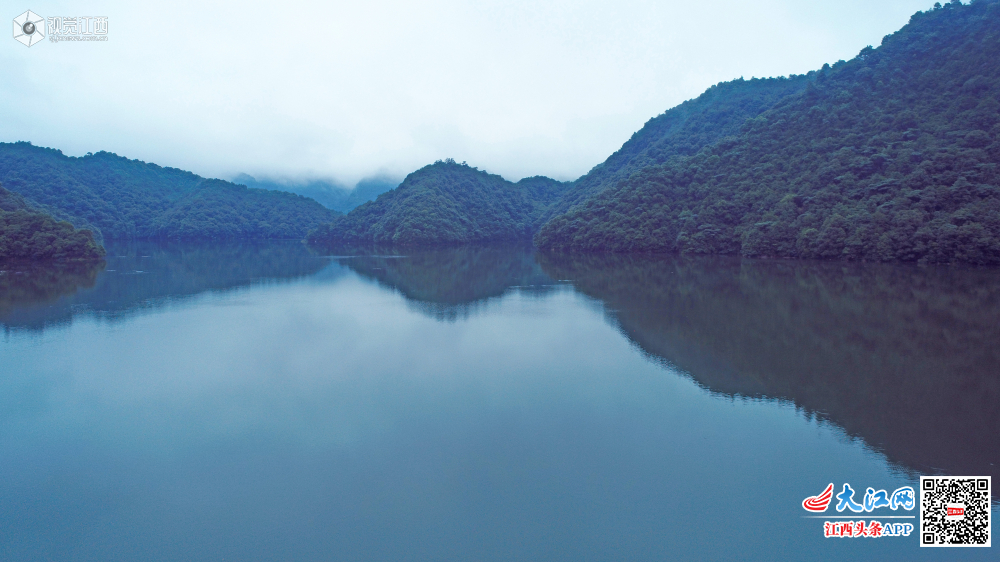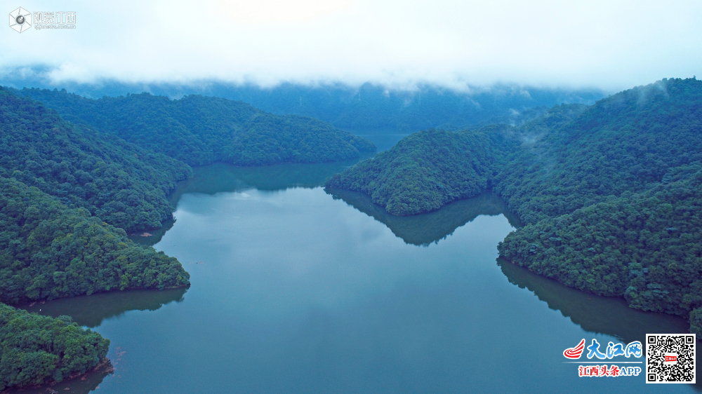 6月13日,航拍雨后的江西省吉安市泰和县白鹭湖国家森林公园,青山绿水,云雾缭绕,构成了一幅夏日清新自然的生态风景画。