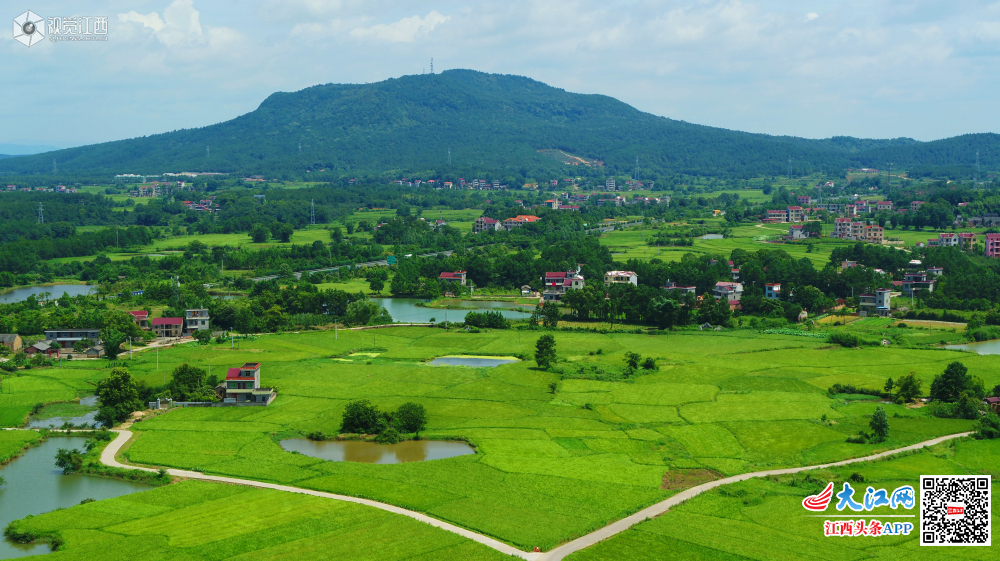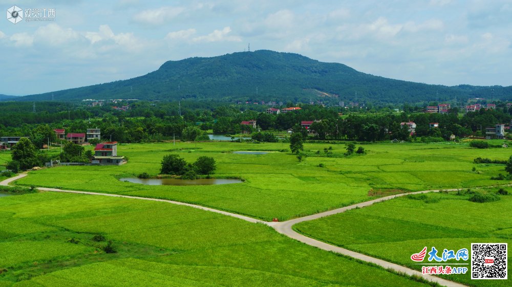 6月18日,江西省吉安市泰和县马市镇东来村,稻田阡陌纵横,无人机从天空俯瞰,满目绿色,远山、道路、村庄、稻田相映成趣,美不胜收,构成一幅夏日田园风景画。