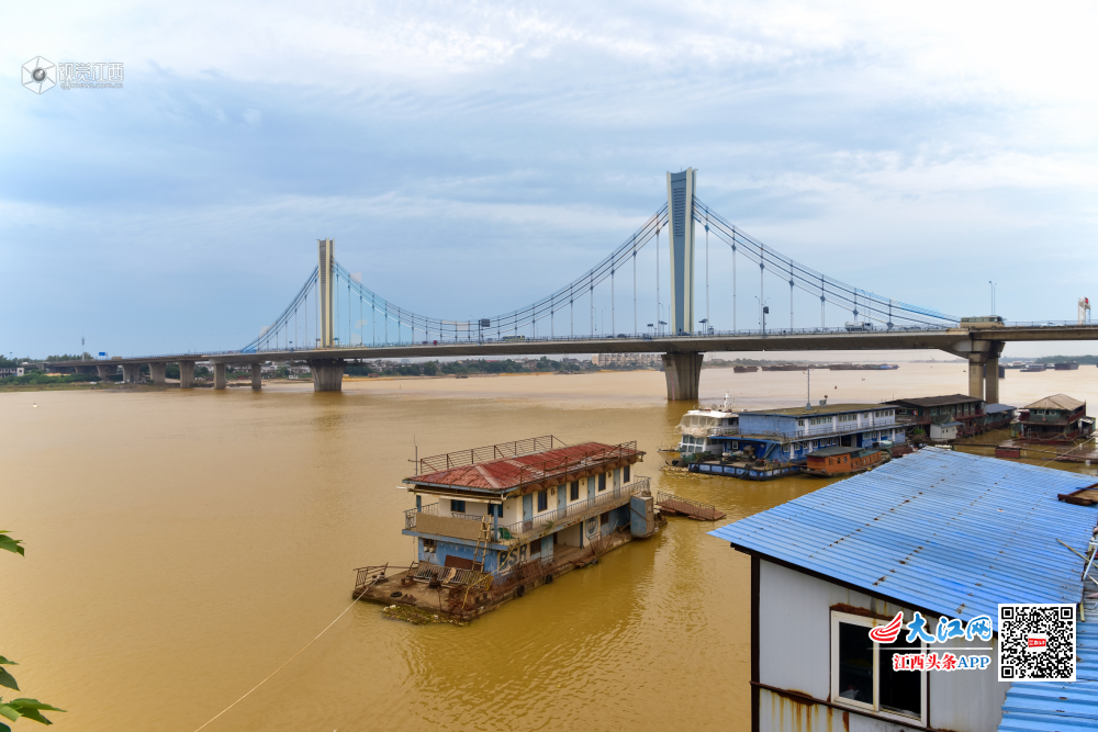 2019年6月21日,江西南昌雨水暂歇,江西赣江南昌段江面水流湍急,水位已涨到江边岸堤旁。据江西水利厅发布江河水位监测,当日下午15时,赣江南昌段水位19.13米,逼近20米,警戒水位23米,历史最高水位24.80米。水文部门表示,目前,江西江河水位均在警戒水位以下,趋于平稳,各类水库也运行正常。