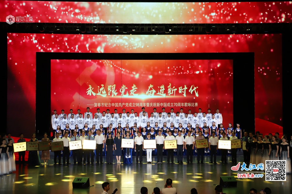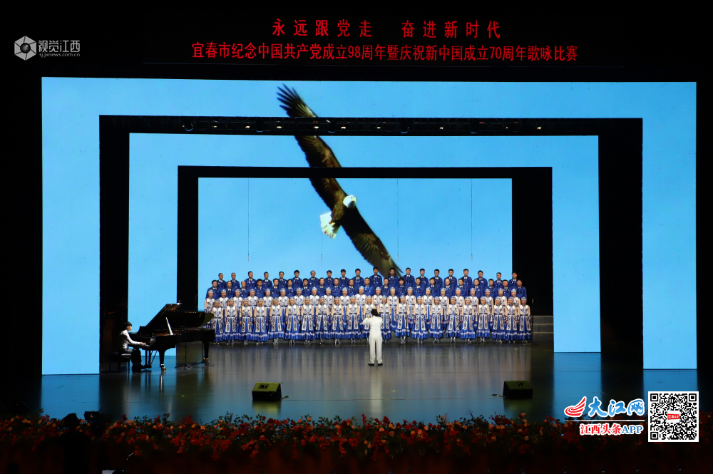 2019年6月28日晚,为纪念中国共产党成立98周年、新中国成立70周年,由宜春市委市政府主办的“永远跟党走·奋进新时代”——宜春市纪念中国共产党成立98周年暨庆祝新中国成立70周年歌咏比赛在宜春文化艺术中心大剧院隆重举行。