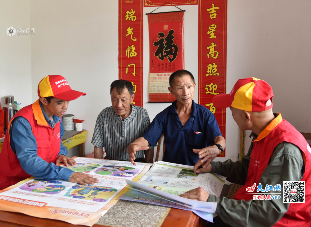 2019年7月1日,国家电网江西电力(遂川)共产党员服务队队员在江西遂川草林镇大坪村为留守老人讲解安全用电知识。当日是中国共产党成立98周年,遂川县供电公司改变活动形式组织3支共产党员服务队深入到86个边远行政村为留守老人讲解安全用电知识,发放安全用电宣传资料,保障留守家庭用电安全,以实际行动庆祝党的生日。