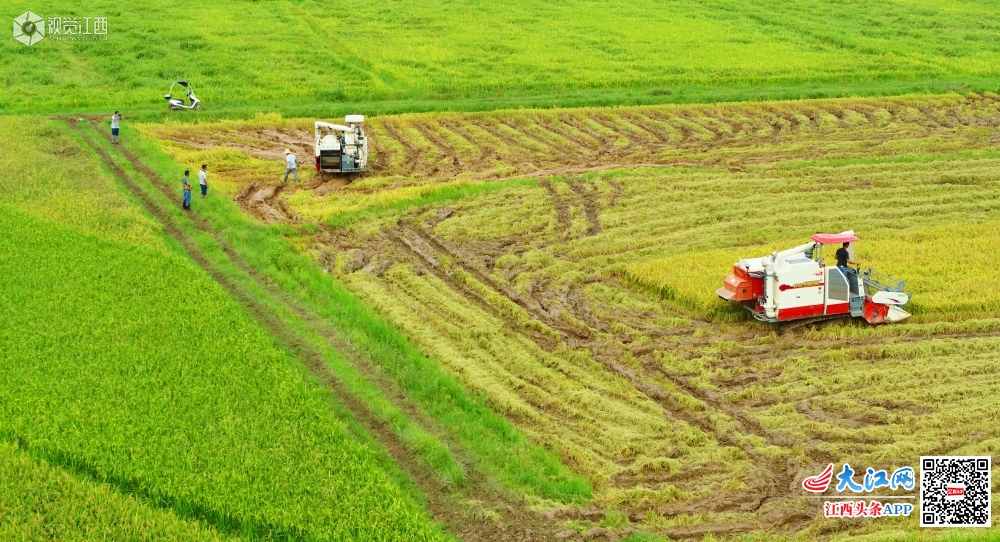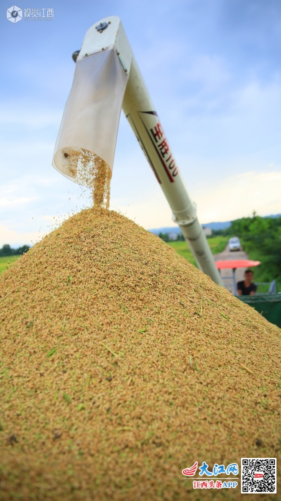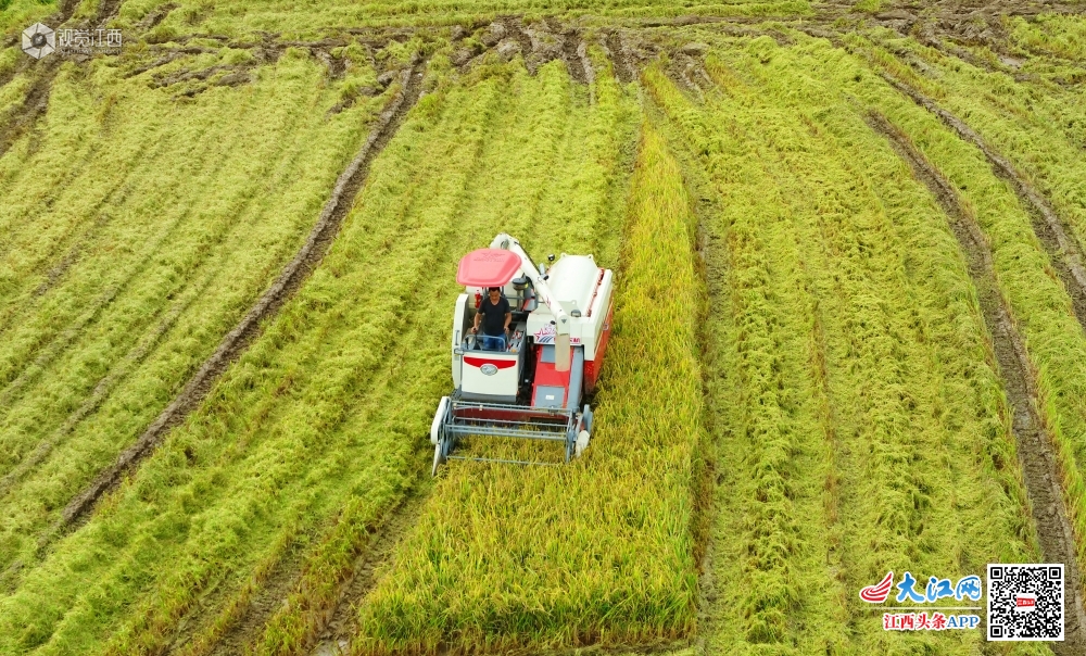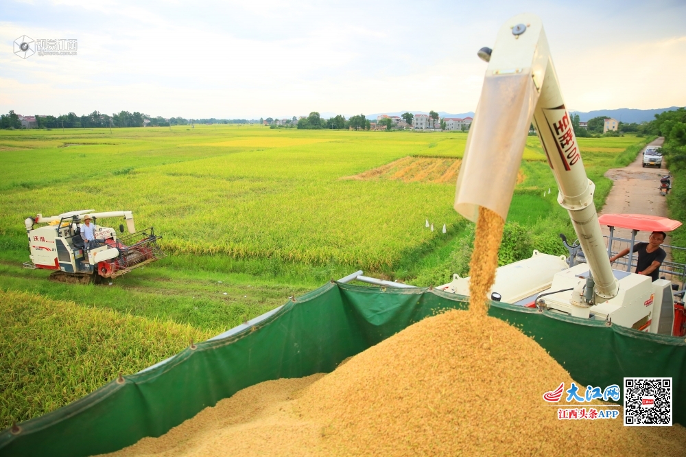7月4日,在江西省吉安市泰和县马市镇荆州村,泰和丰颖稻业合作社的农机手正驾驶收割机在收割早稻,拉开了全县早稻收割的序幕。泰和县是全国商品粮基地县,眼下正值夏收时节,农民正抢抓农时开展早稻收割,确保颗粒归仓,夏日田园一派丰收的繁忙景象。