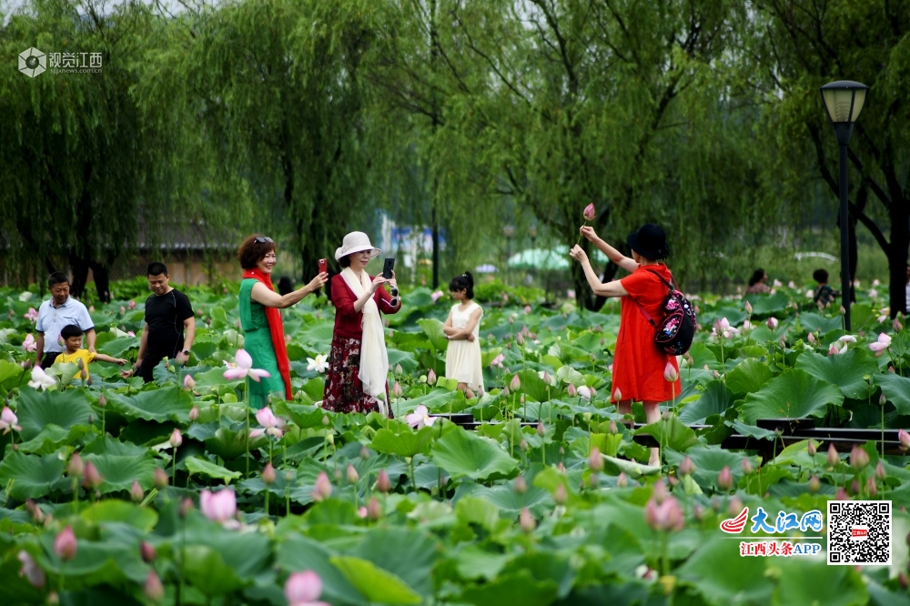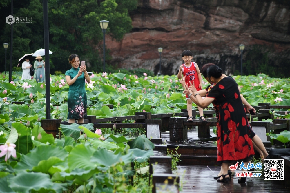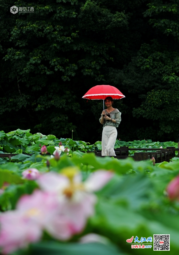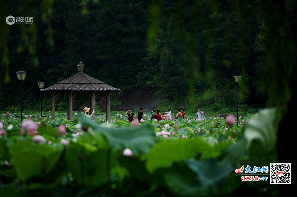 2019年7月6日,游客在江西省上饶市横峰县莲荷乡梧桐畈荷博园参观荷花。进入盛夏,正是荷花盛开的时节,横峰县梧桐畈荷博园千亩荷花渐次开放,清新动人,吸引了四面八方的游客来赏荷花。