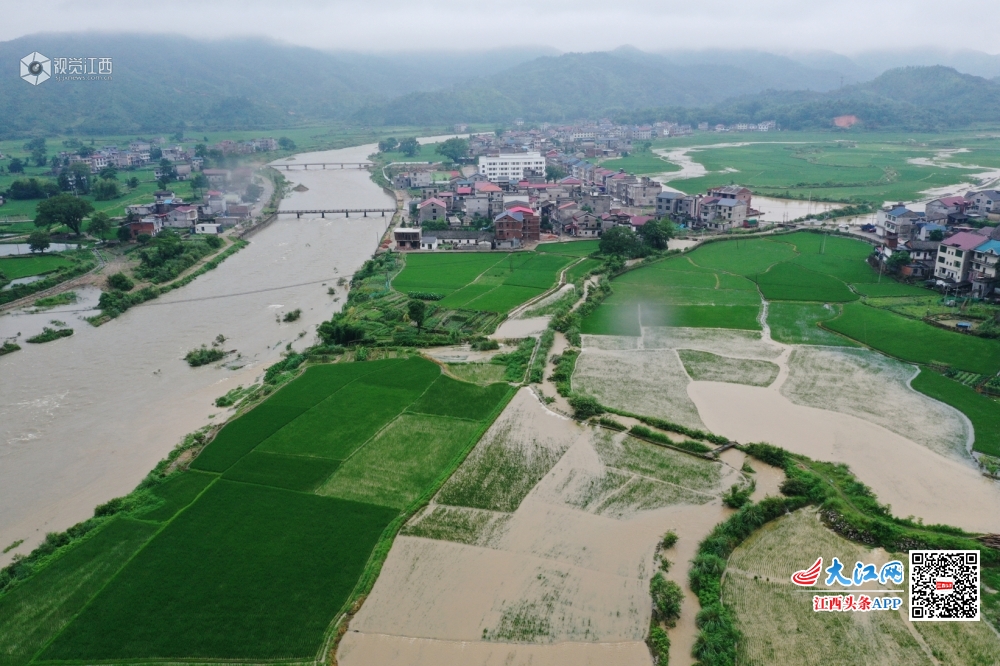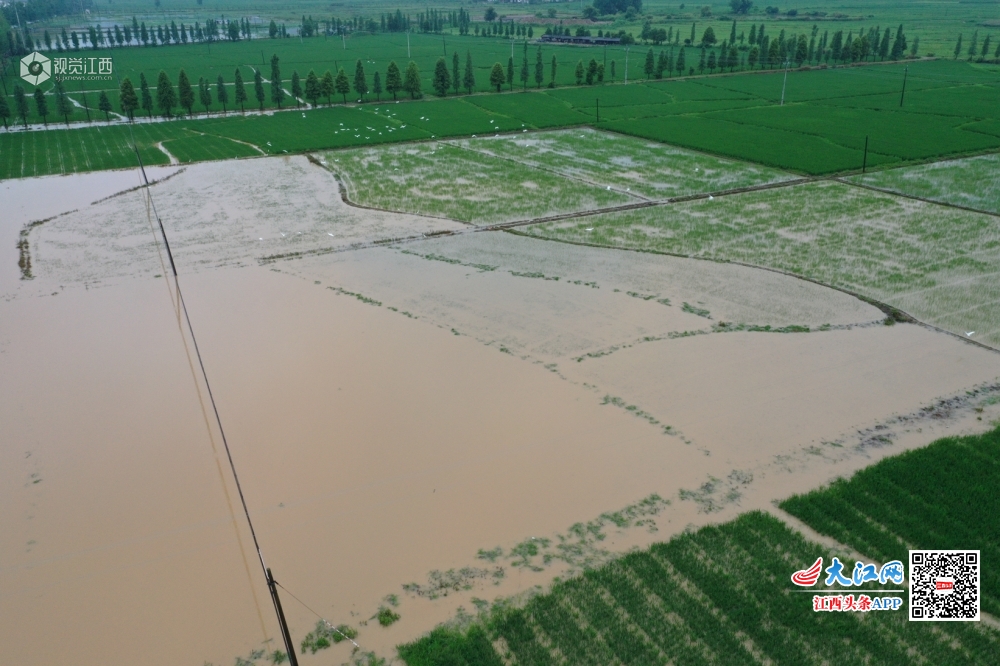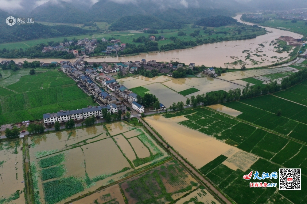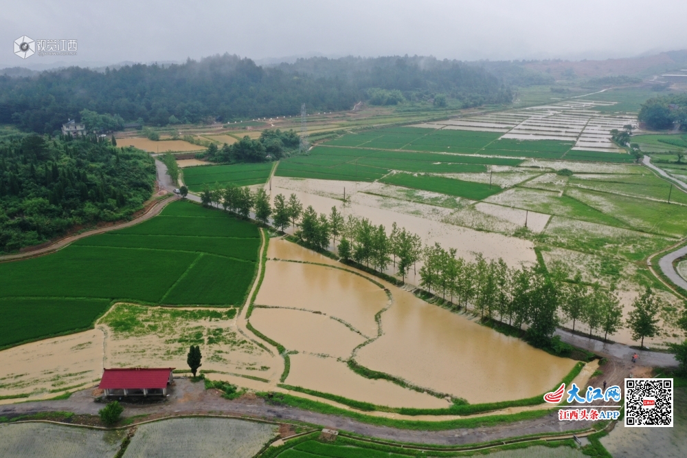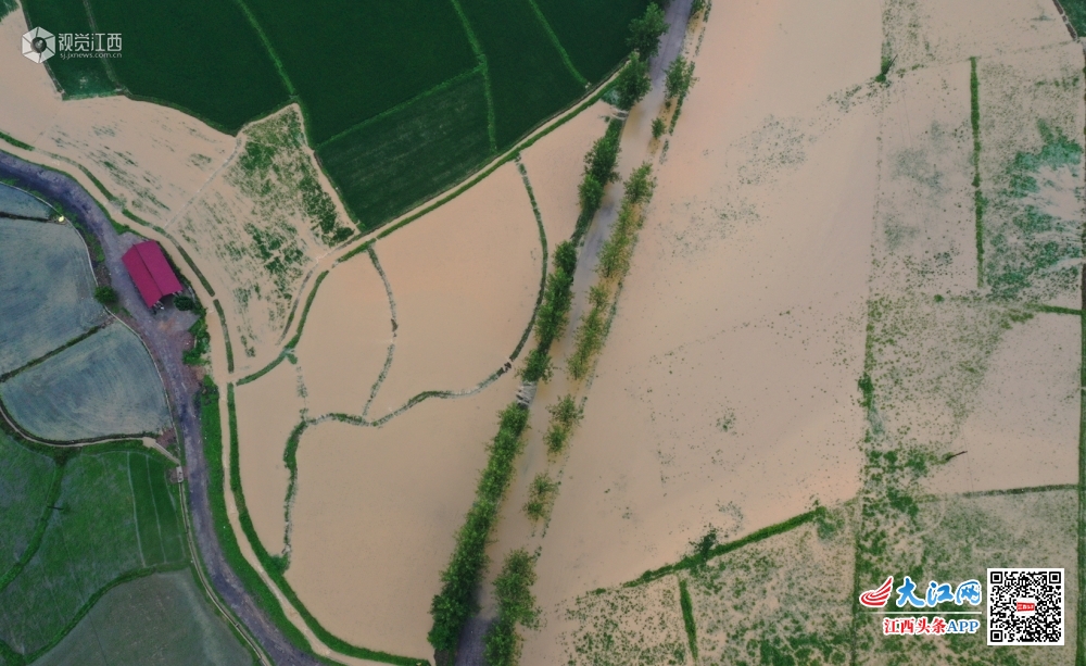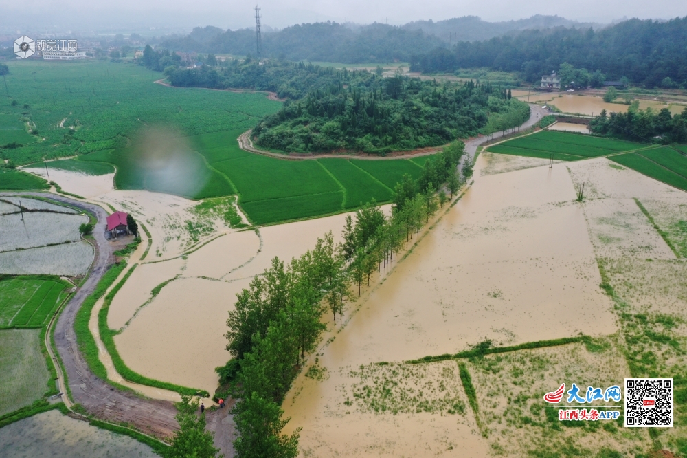 江西铅山:暴雨来袭 航拍洪水淹没农田