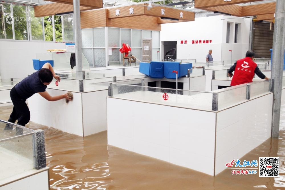 7月9日,江西上饶普降暴雨,导致7月9日傍晚9时信江的洪水猛涨并四处犯烂,汹涌澎湃的洪水将开业不久的东瓦窑农贸市场淹没,市场停止营业。7月10日早晨,东瓦窑农贸市场临时搬到附近的道路上,市场人员在一边退水的情况下一边清除市内的淤泥。
