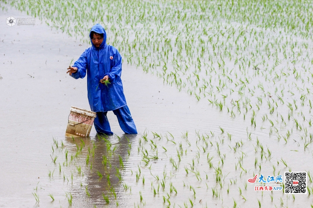 连日来,峡江县持续强降雨天气造成农田被淹,当地农民抢抓农时冒雨播种,做到早稻损失晚稻补。
