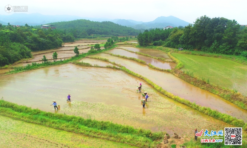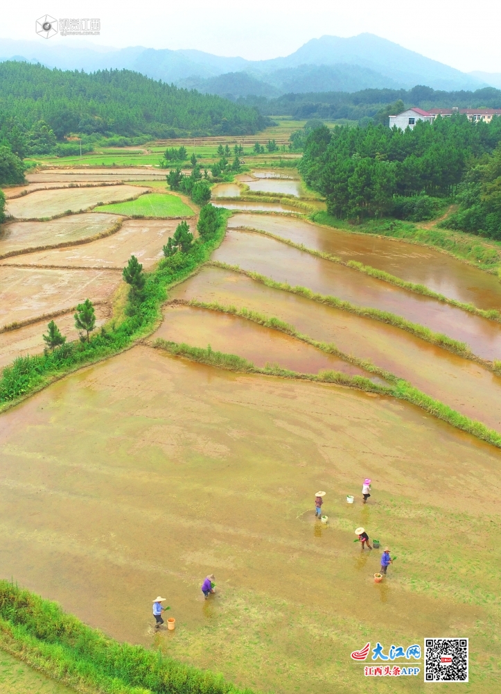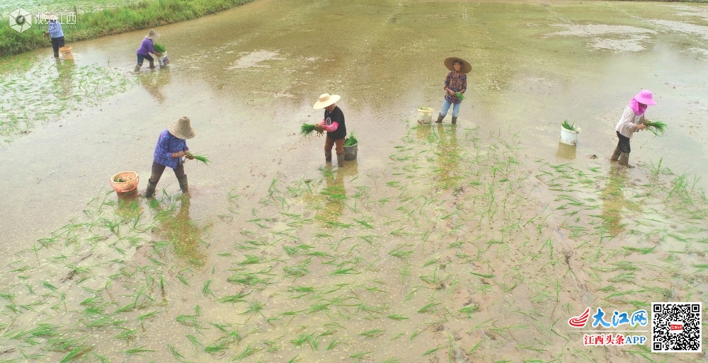 7月20日,在江西省吉安市泰和县上模乡上模村,农民抢抓农时在田间抛秧劳作。