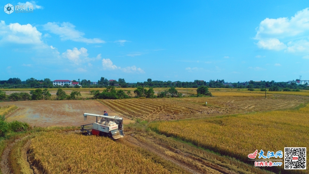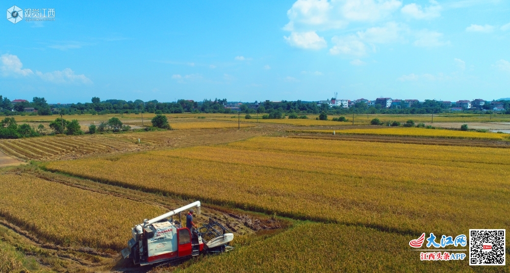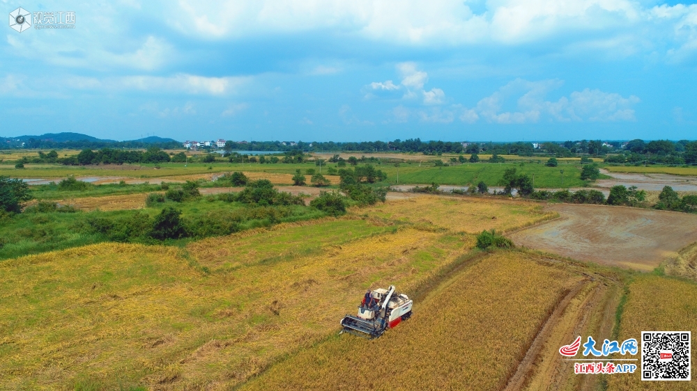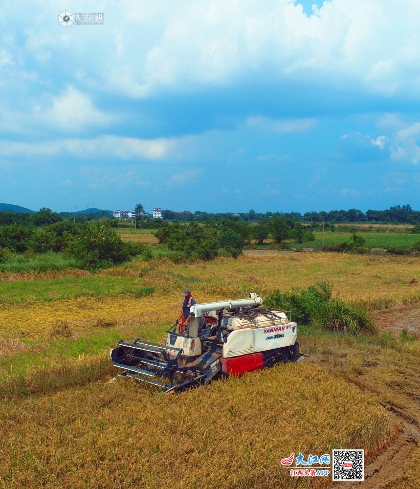 7月22日,在江西省吉安市泰和县马市镇仙桥村,农民驾驶收割机在田间抢收早稻。