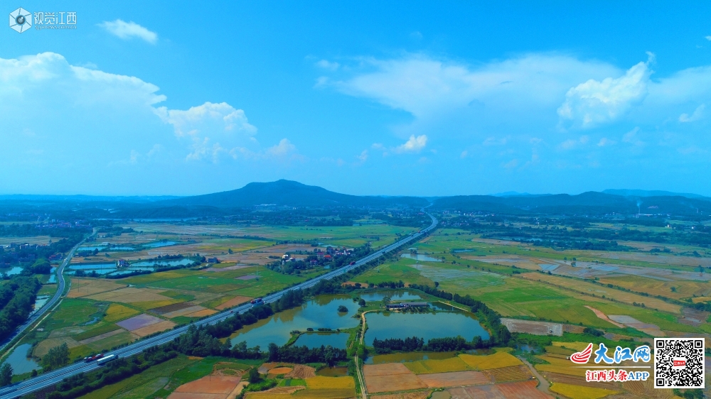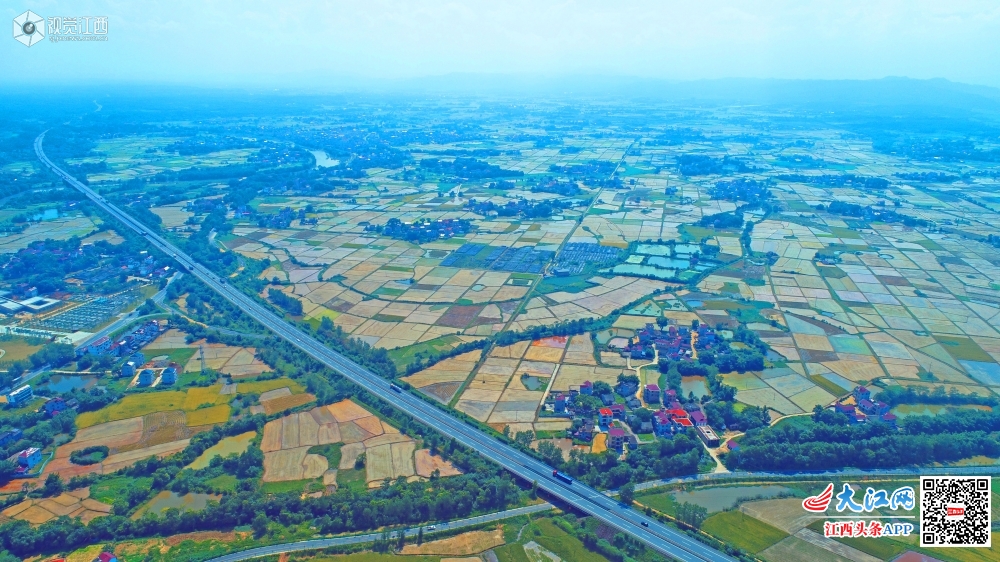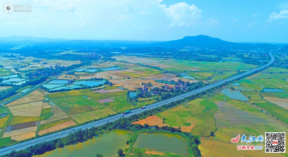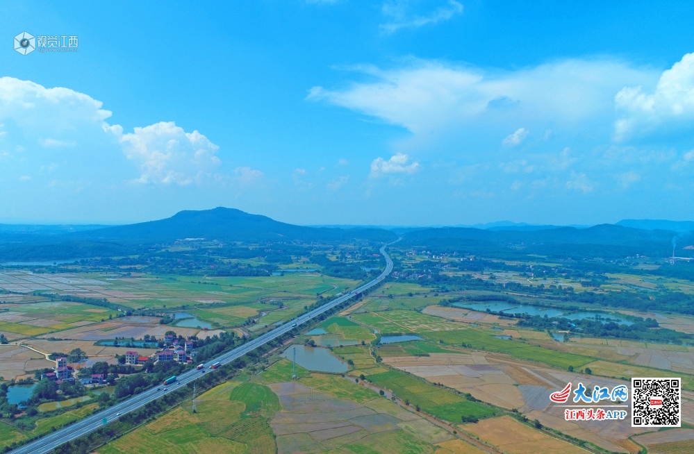 7月22日,航拍大广高速江西省泰和县马市镇路段,这条贯通南北的交通大动脉,犹如一条长龙,翻山越岭,穿越一望无际的稻田,空中俯瞰,显得蔚为壮观,美不胜收。