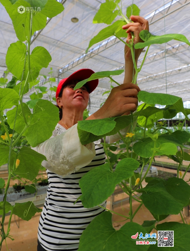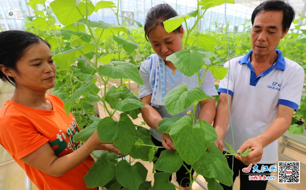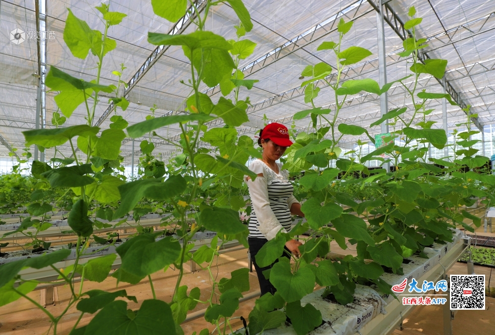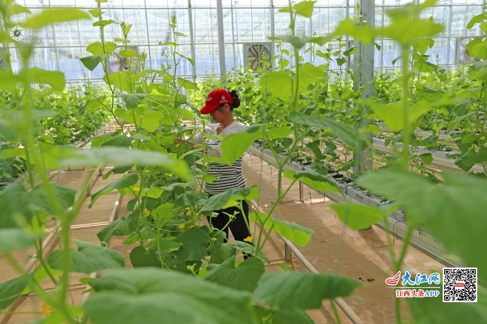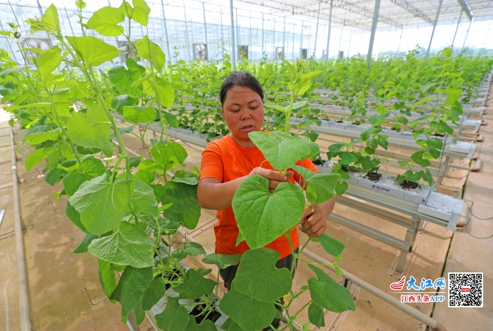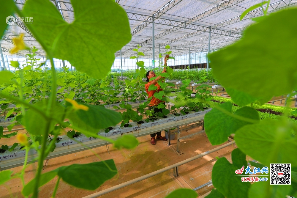 7月23日,在江西省吉安市泰和县螺溪镇现代农业科技产业园,农民在无土栽培大棚内劳作。