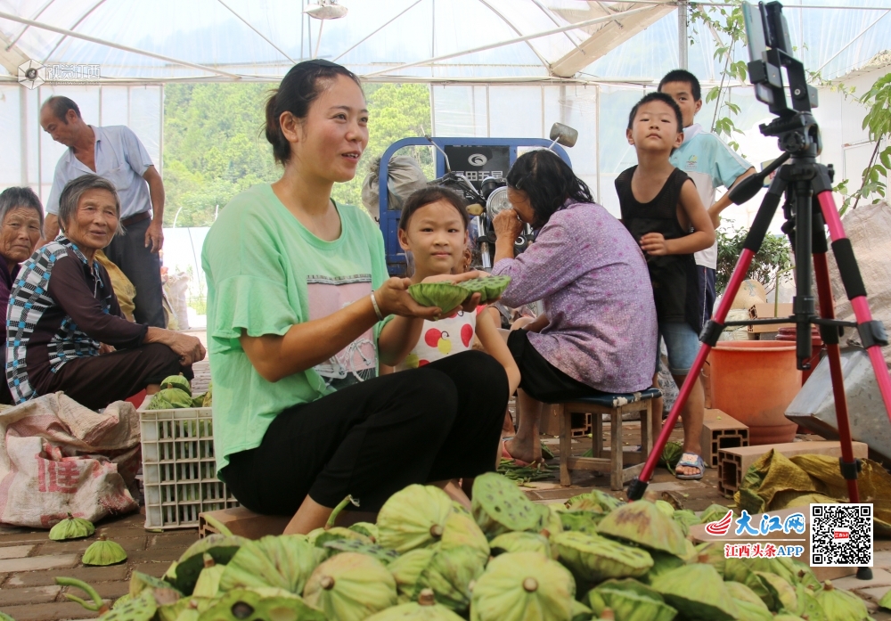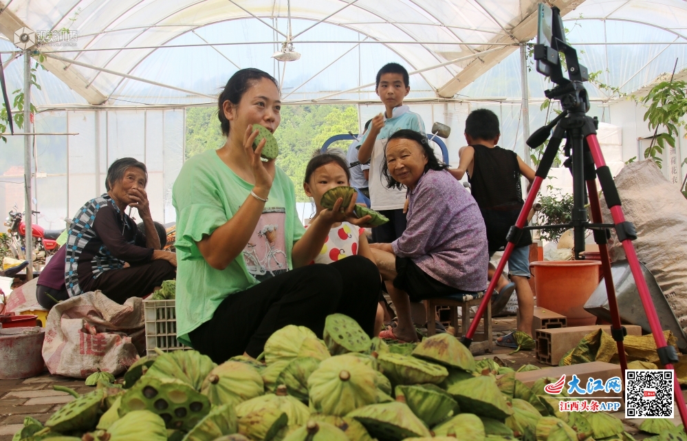 2019年7月24日,江西省遂川县碧洲镇宏山村碧荷弯产业基地种植荷花女能手张九英把刚刚从基地采摘回的新鲜莲蓬,直播产品俏销到北京、广州等地。近年来,作为国家级电子商务进农村综合示范县江西省遂川县,探索出电子商务进农村的高效做法及电商扶贫典型模式,采取“直播+微商+短视频”为主要手段,通过免费提供线上电商培训、跟踪辅导、资源对接等,组织、带领农民通过互联网销售农产品,有效促进当地农产品销售,助力农民致富。