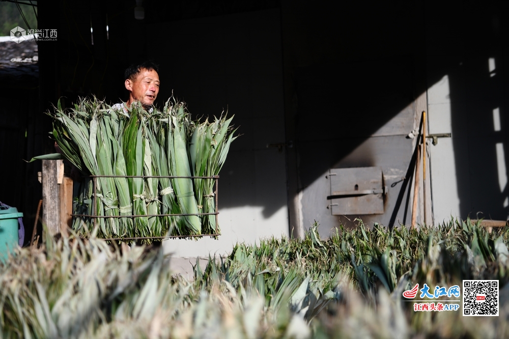 2019年7月24日,在江西省上饶市铅山县天柱山高泉村,村民正在整理、烘干、打包箬叶。该乡地处武夷山脉,山里野生箬叶资源丰富,许多村民从六月份开始,即进山采摘,收入少则数千元,多则几万元。据悉,该乡有300多名村民从事箬叶产业,可为每名村民增收近万元。小小的箬叶已成为当地农民眼中的“发财叶”、“黄金叶”。