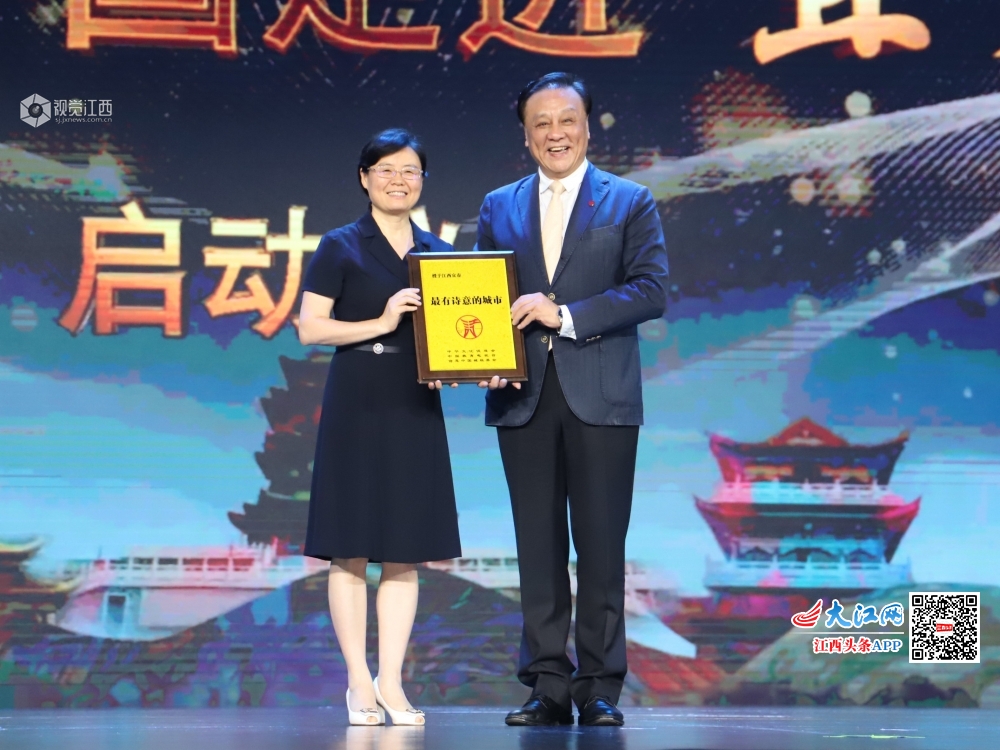 2019年7月25日晚,“诗意中国·书香宜春”2019郑谷草堂诗词夏令营朗诵音乐会(以下简称“朗诵音乐会”)在宜春市文化艺术中心举行。在朗诵音乐会启动仪式上,中华文化促进会、中国教育电视台、诗意中国城组委会联合向宜春市授予“最有诗意的城市”和“诗意中国朗读基地”牌。