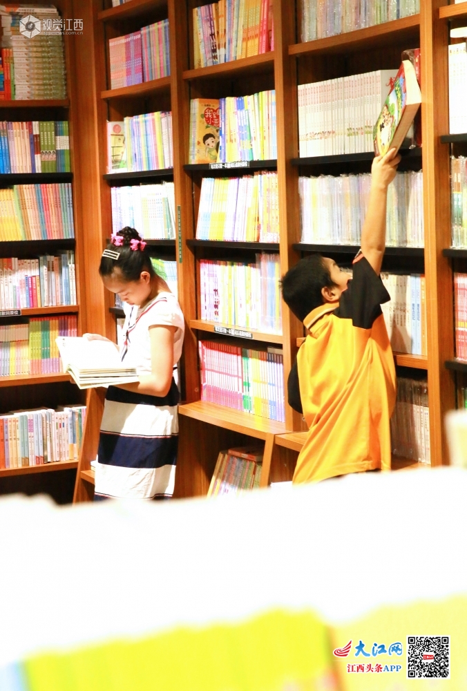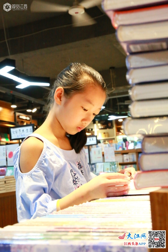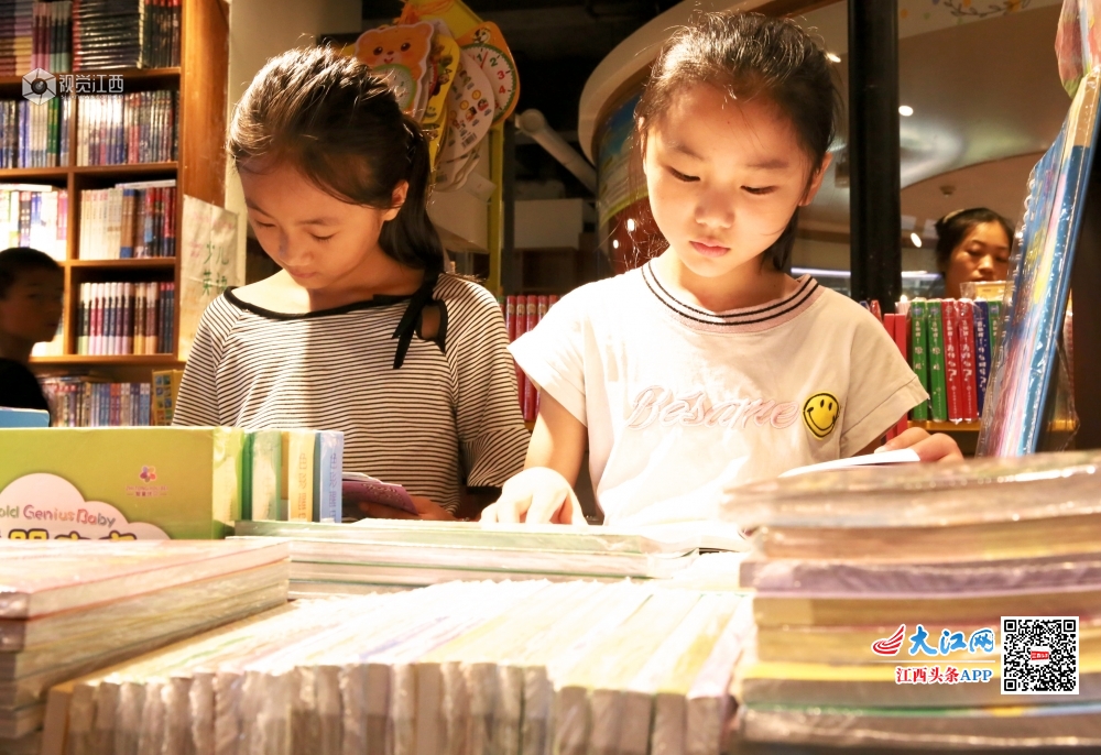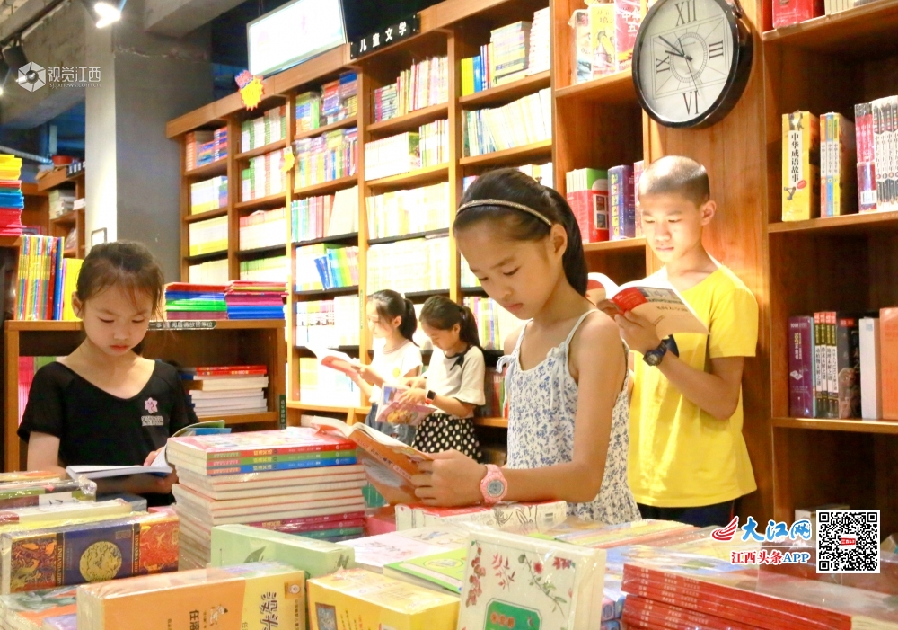 时下正值高温酷暑季节,江西省泰和县众多学生纷纷走进书店书城,在凉爽的环境里畅游书海,享受读书的乐趣。