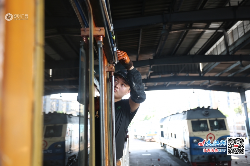8月1日,南昌局集团公司向塘机务段整备车间正在紧张开展暑运各项工作。当天下午,该车间职工顶着检车棚内的高温,专心致志进行内燃机车车窗遮阳帘的修理焊装工作,给机车遮阳帘加牢加固,为暑期机车乘务员作业环境提供良好保障。