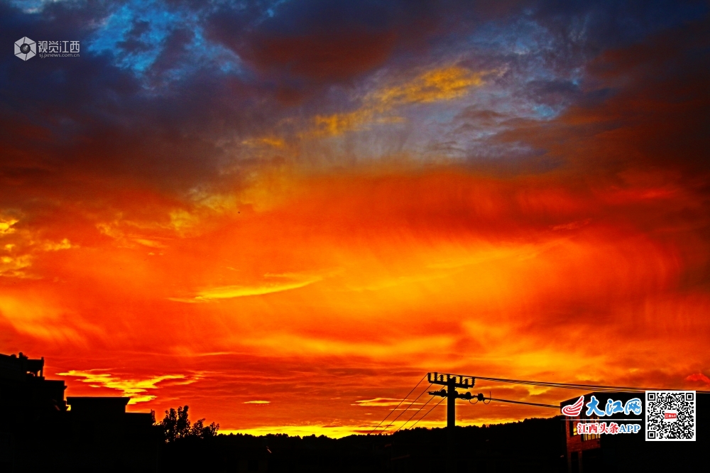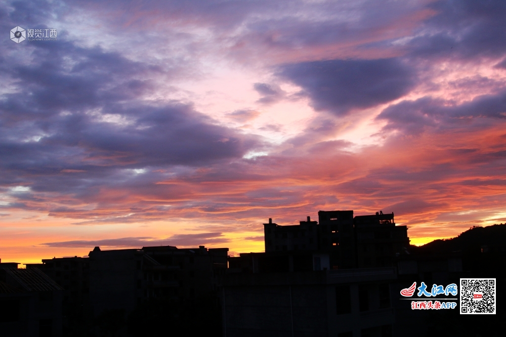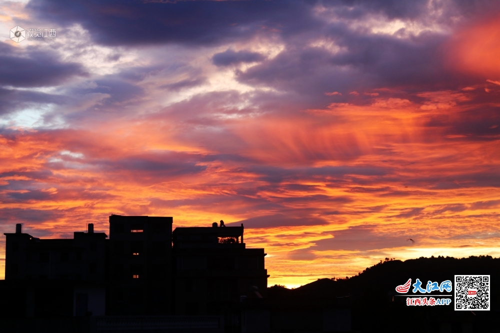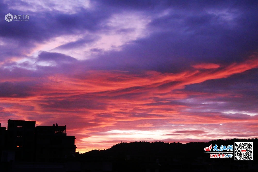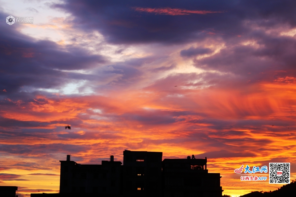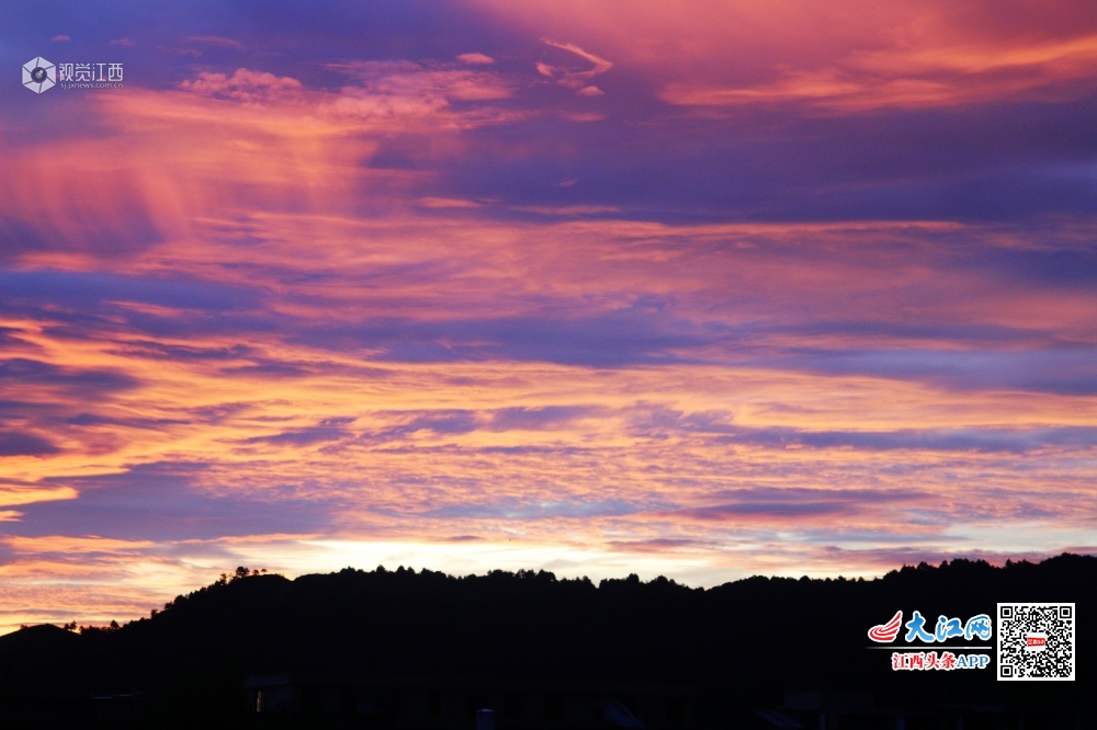 2019年8月2清晨,在江西省遂川县天空惊现一幅绝美朝霞满天美如画。连日持续高温天气,让早霞“烧”出最美朝霞 ,色彩斑斓,蔚然壮观,美不胜收。