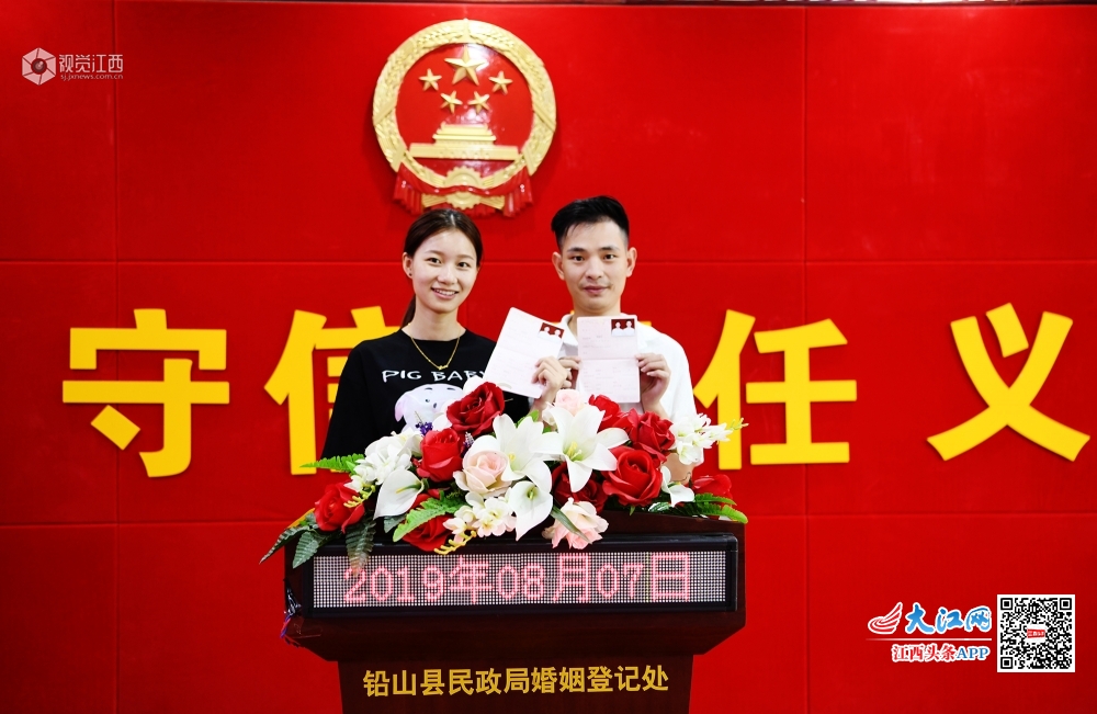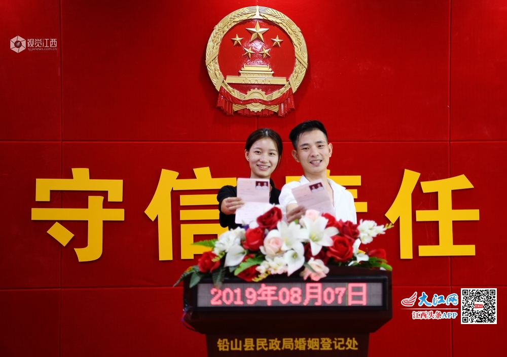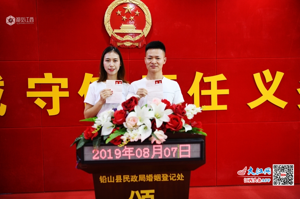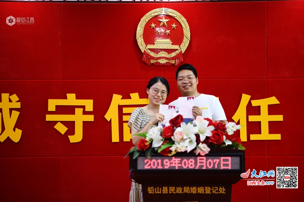 2019年8月7日,也是农历七月初七,俗称“七夕”节,在江西省上饶市铅山县民政局婚姻登记处,前来登记结婚的准新人络绎不绝。