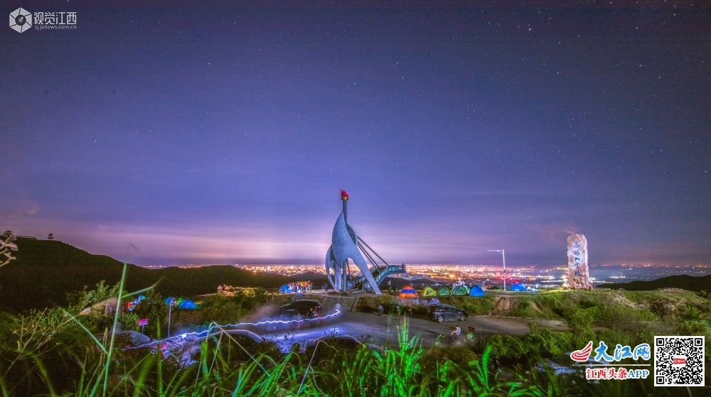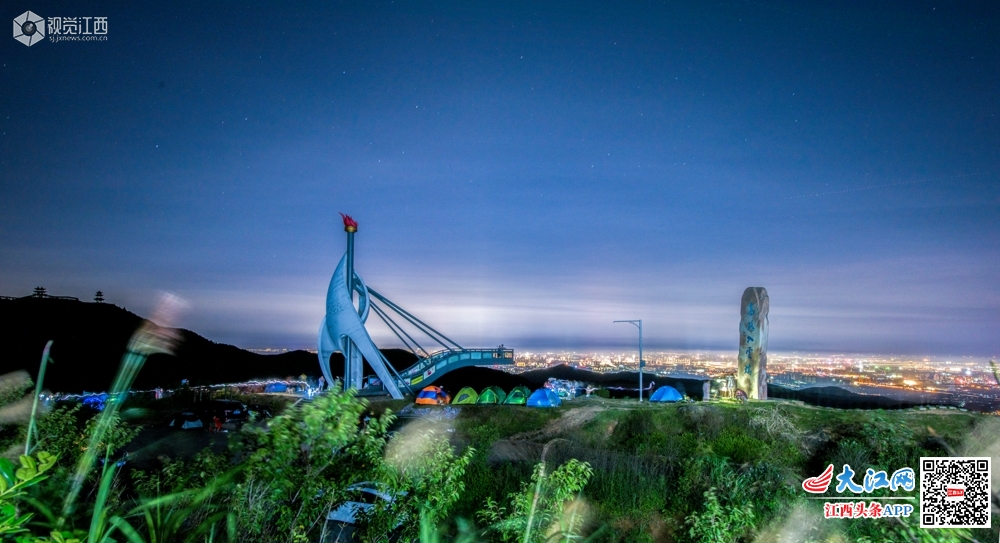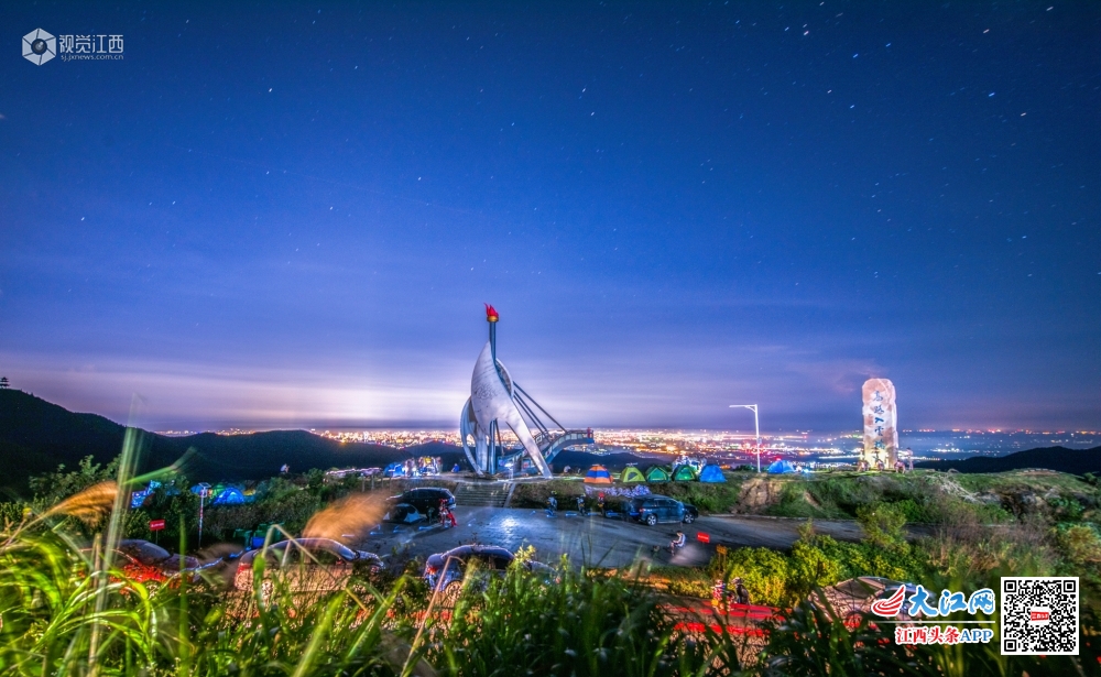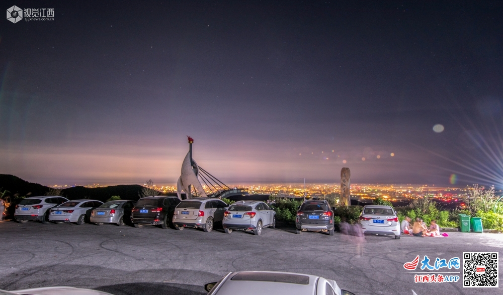 8月5日晚上,弯月高悬,繁星点点,在湾里区梅岭罗汉峰山巅的观景台,山下英雄城南昌的璀璨灯火和天空中点点繁星交相辉映,山上山青草绿凉风习习,正是一处绝佳的纳凉赏景的胜地。