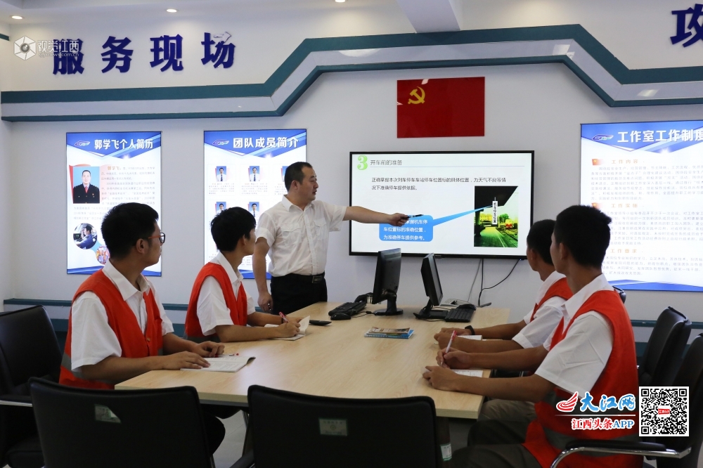为帮助企业青年职工学习业务知识、提升业务技能,8月11日,中国铁路南昌局集团有限公司向塘机务段全国劳模郭学飞利用休班时间在郭学飞劳模创新工作室及向塘机务段机车整备场,“文武”两不误,为企业青年职工现场教学旅客列车平稳操纵法及电力机车构造原理。