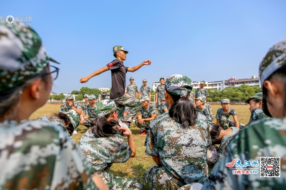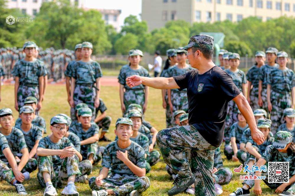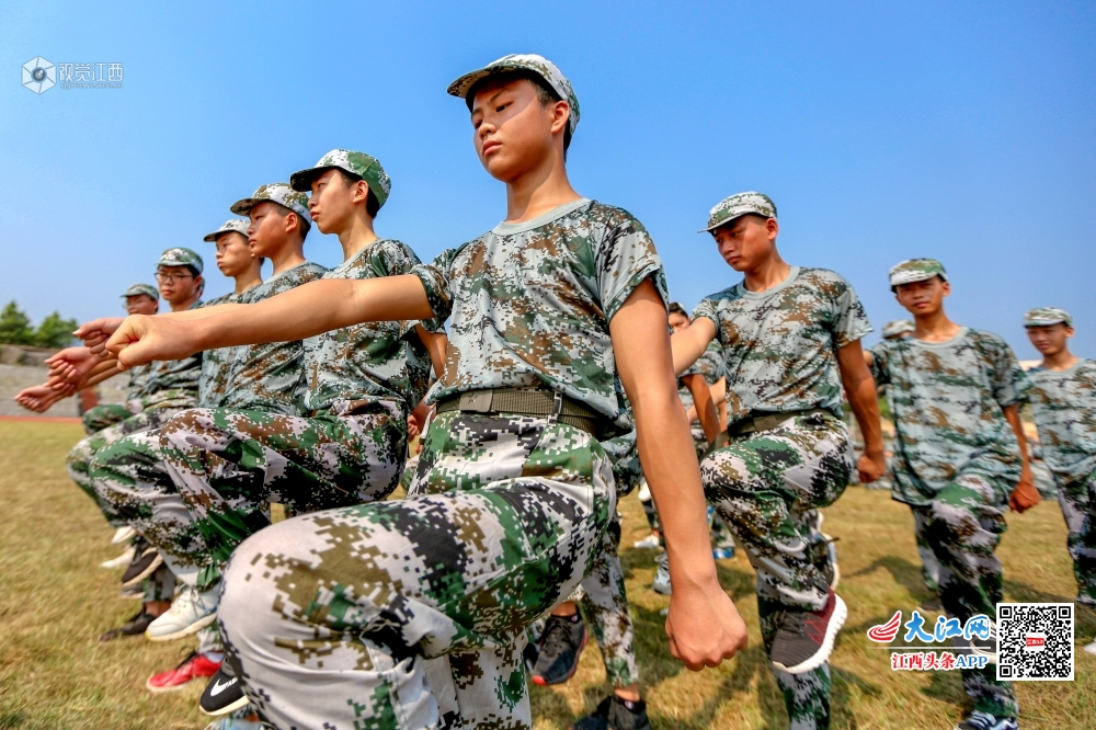 新学期开学,峡江县峡江中学的1150名高一新生在烈日下开展军训,锻炼身体,磨练意志。