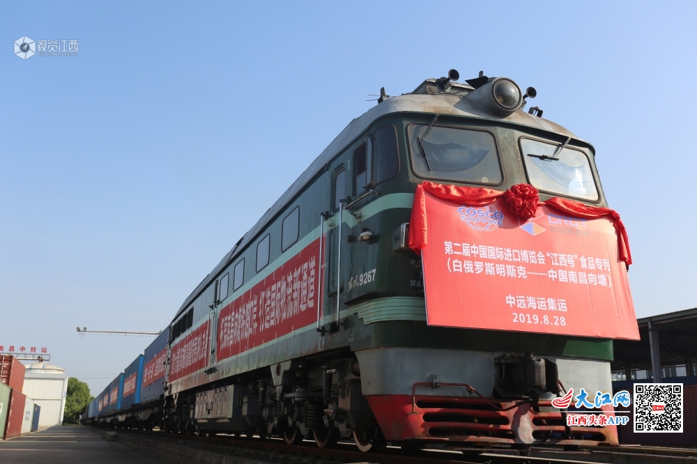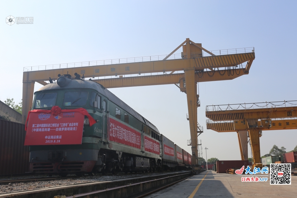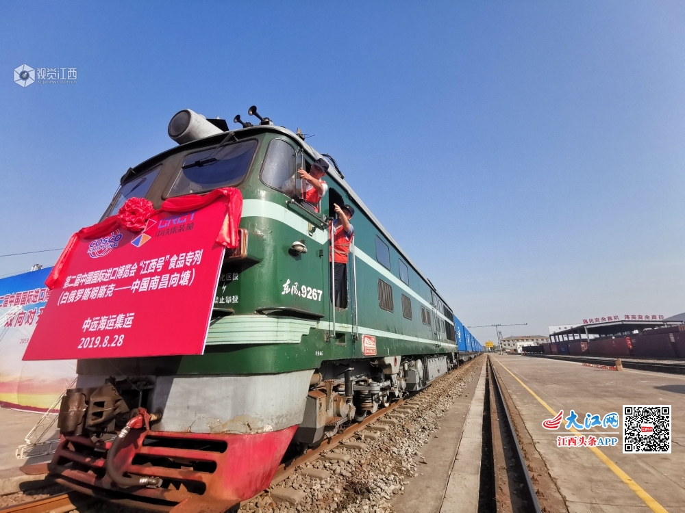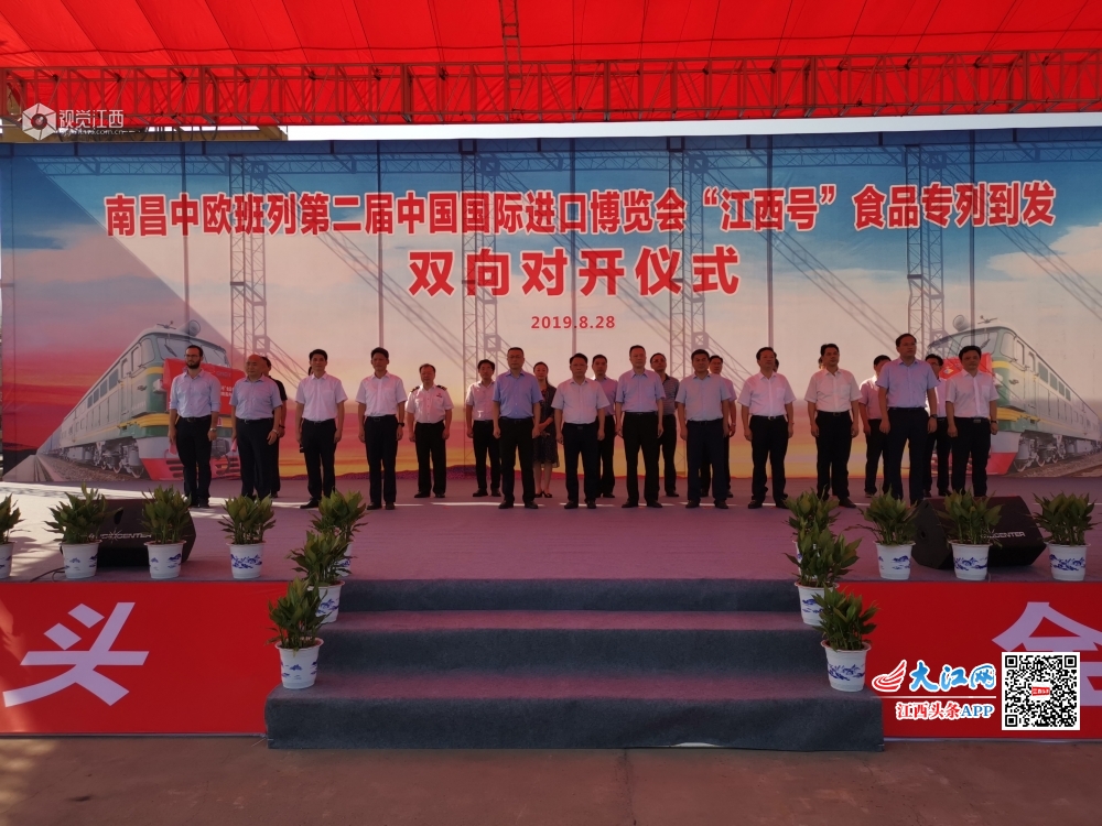 8月28日,中欧班列第二届中国国际进口博览会“江西号”食品专列到发双向对开仪式在南昌向塘铁路口岸举行。南昌局集团公司向塘机务段选派“精兵强将”火车司机做好全程约一万公里的专列护送“排头兵”。