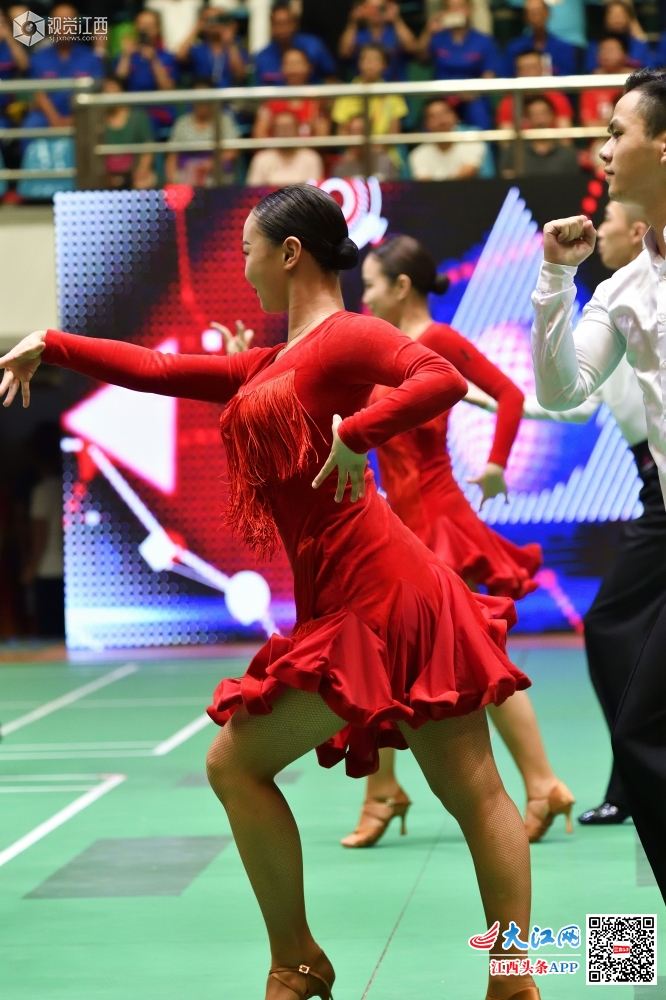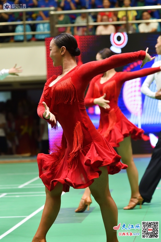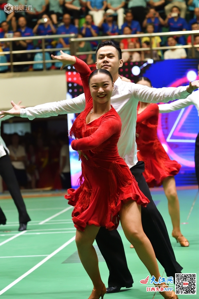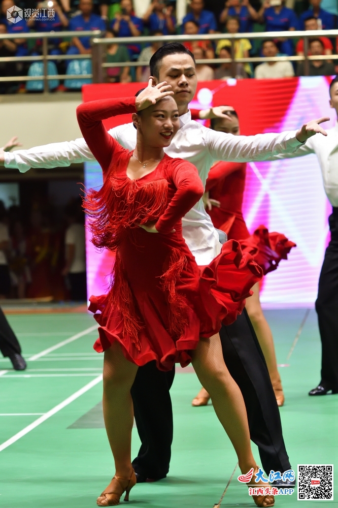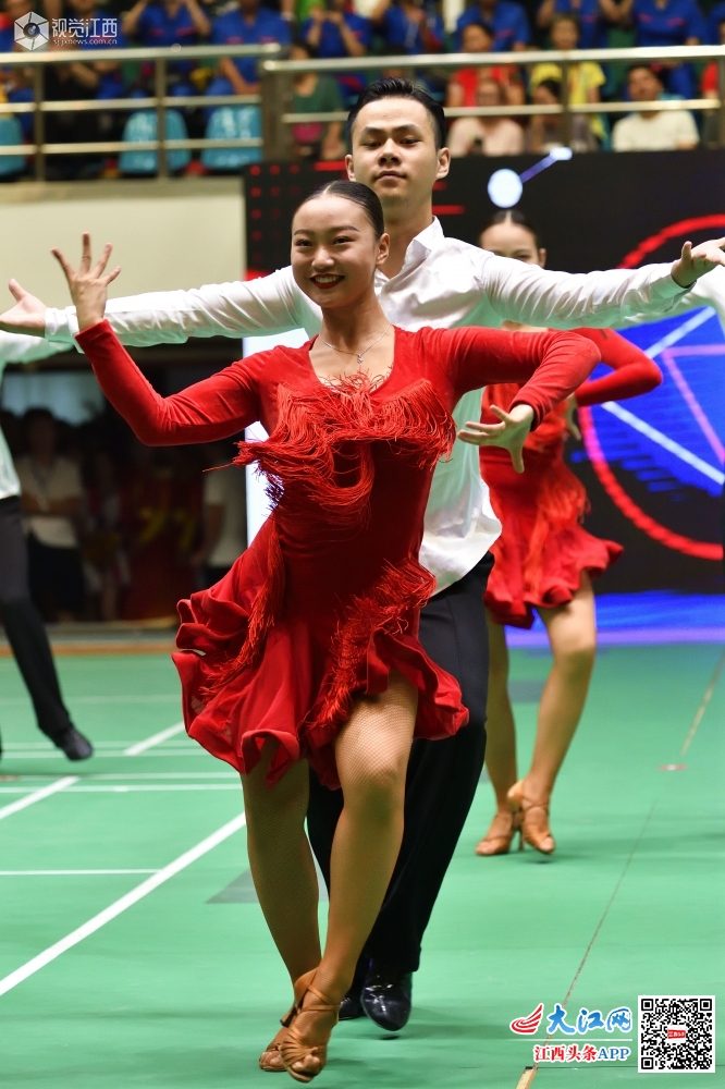 南昌市西湖区职工运动会开幕式上的拉丁舞表演。