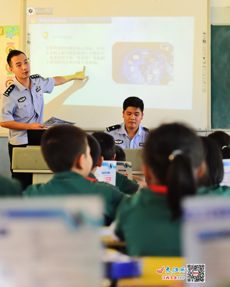 连日来,会昌县委网信办通过开展“国家网络安全宣传周”进校园活动,组织该县公安局网安大队民警在法治小课堂上趣味开讲,集中向小学生们讲解如何避免网络欺诈、注意上网安全等知识,引导学生从小争做好网民。