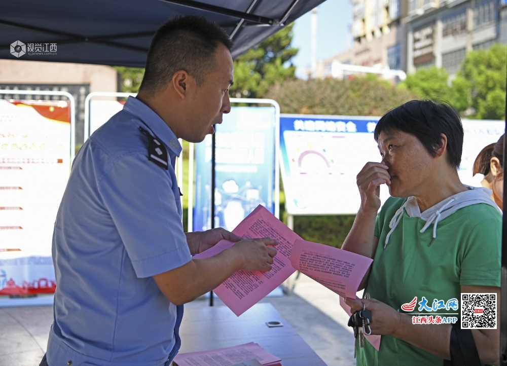 2019年9月20日,在江西省上饶市铅山县辛弃疾广场,网警正在为市民讲解网络安全相关知识。当日,该县举办“网络安全为人民,网络安全靠人民”为主题的第六届国家网络安全宣传周主题活动。