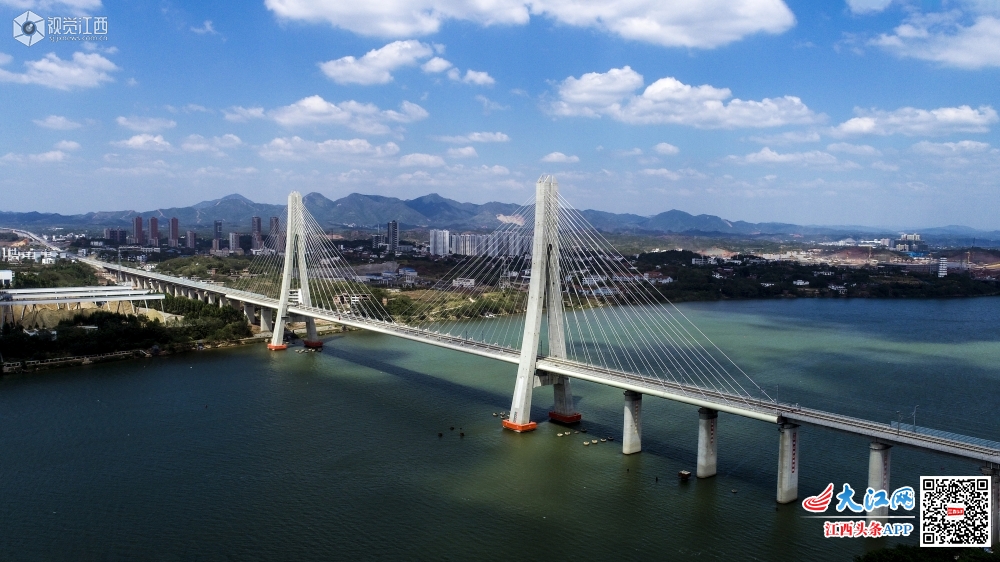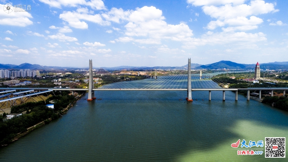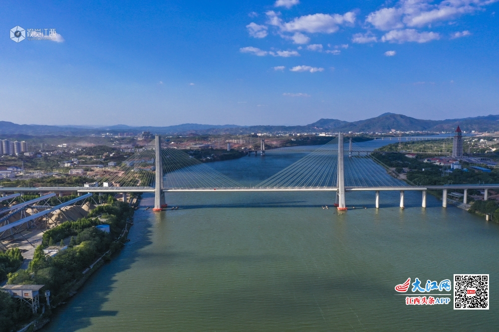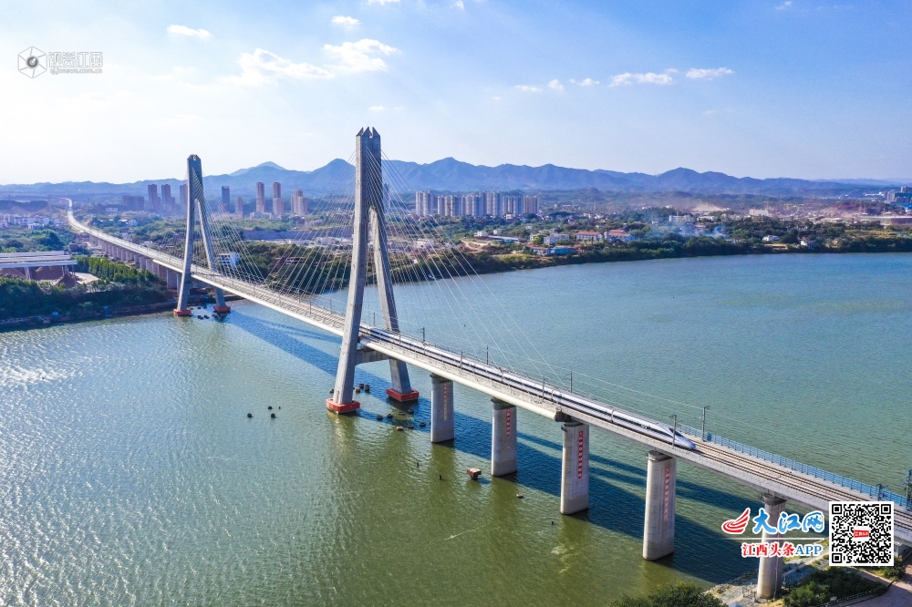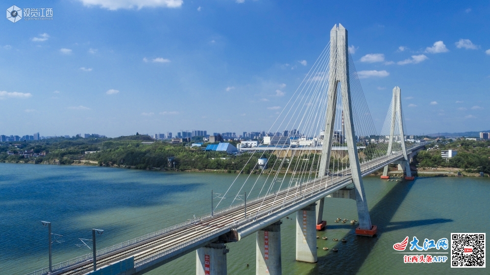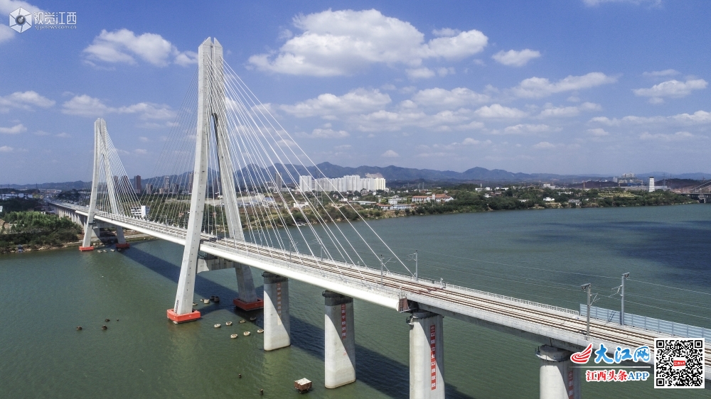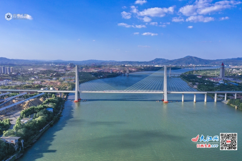 昌赣铁路赣州赣江特大桥桥长2.156km,是国内设计时速350公里大跨度高速铁路斜拉桥。赣州赣江特大桥在设计施工中创造了五个国内首次,首次将箱形钢-混结合梁用于高速铁路大跨斜拉桥,首次运用新型钢-混结合段构造连接技术,首次将索塔钢锚箱结构应用于高速铁路大跨斜拉桥,首次将锚拉板应用于高速铁路斜拉桥,首次在高速铁路斜拉桥上铺设无砟轨道。金秋时节,有关部门抓住有利时机,抓紧进行调式,确???。据了解,昌赣高铁开通运行以后南昌至赣州运行时间由最快4个小时缩短至2小时左右。