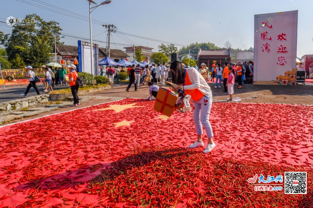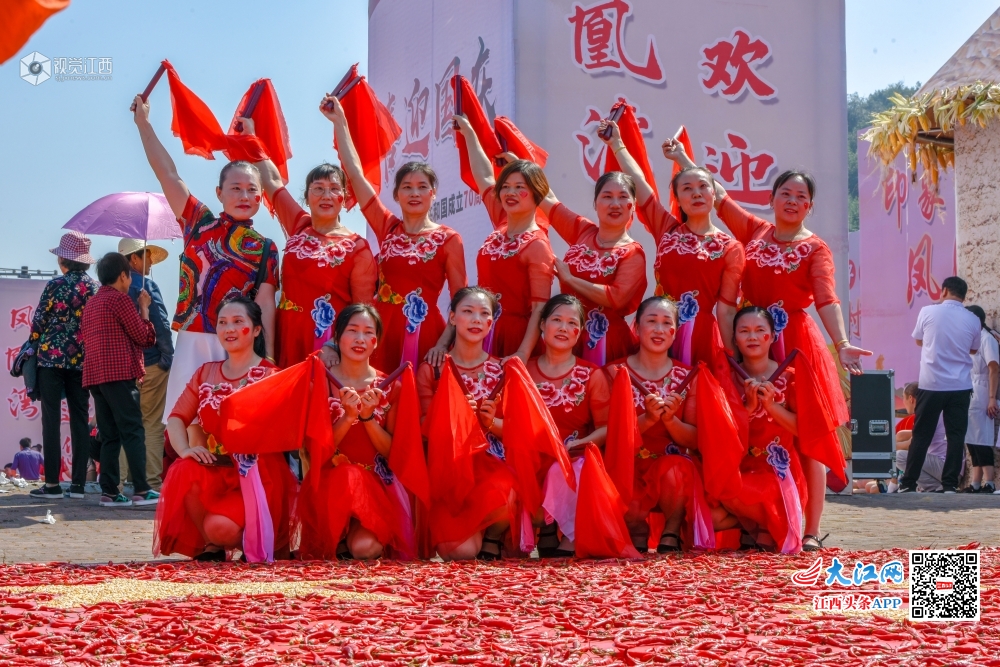 此次活动分"庆丰收、晒丰收、话丰收、享丰收"四个环节当地村民把今年在田地里收获的庄稼都拿出家门晒成各式的图案。锣鼓喧天,载歌载舞喜迎中华人民共和国成立70周年。