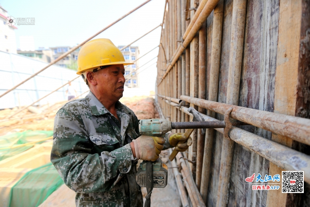 10月3日,工人在江西省峡江县巴邱镇路堤工程项目现场施工。国庆节期间,峡江县的许多劳动者依然坚守工作一线,在岗位上度过节日。