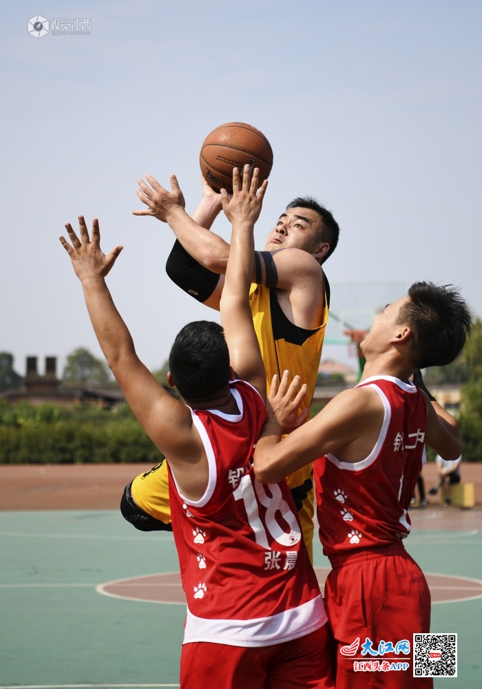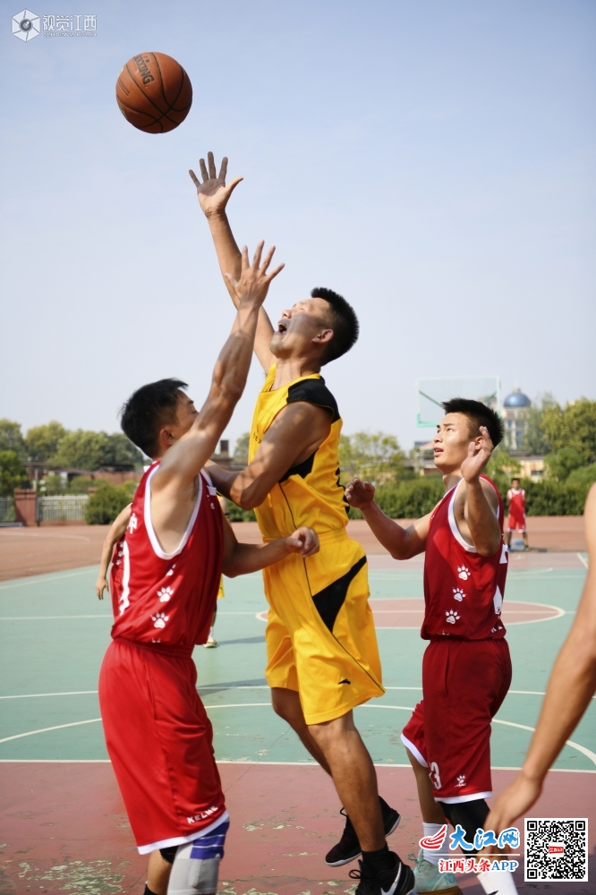 2019年10月4日,在江西省上饶市铅山县铅山一中,该县男子篮球赛正在激烈进行着。为庆祝新中国成立70周年,丰富全县教职工业余文体活动,进一步激励大家不忘初心、牢记使命,以更加饱满的热情投入工作,该县组织了此次篮球赛活动。近几年,全县教体系统各项体育赛事和群众性体育活动开展如火如荼,不仅极大地丰富了师生的精神文化生活,也陶冶了师生情操,锤炼了师生品质。