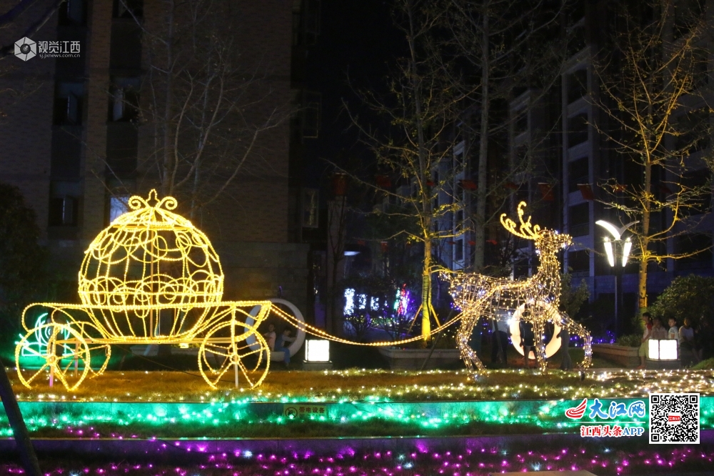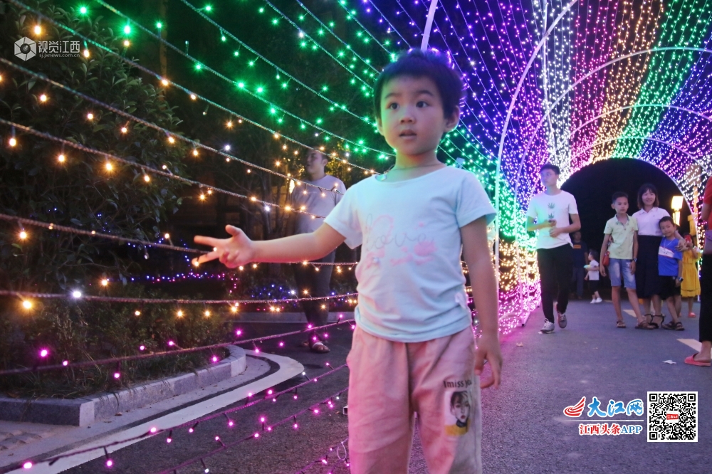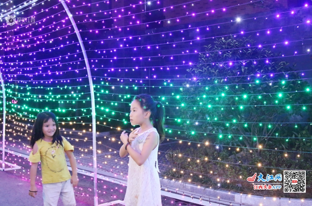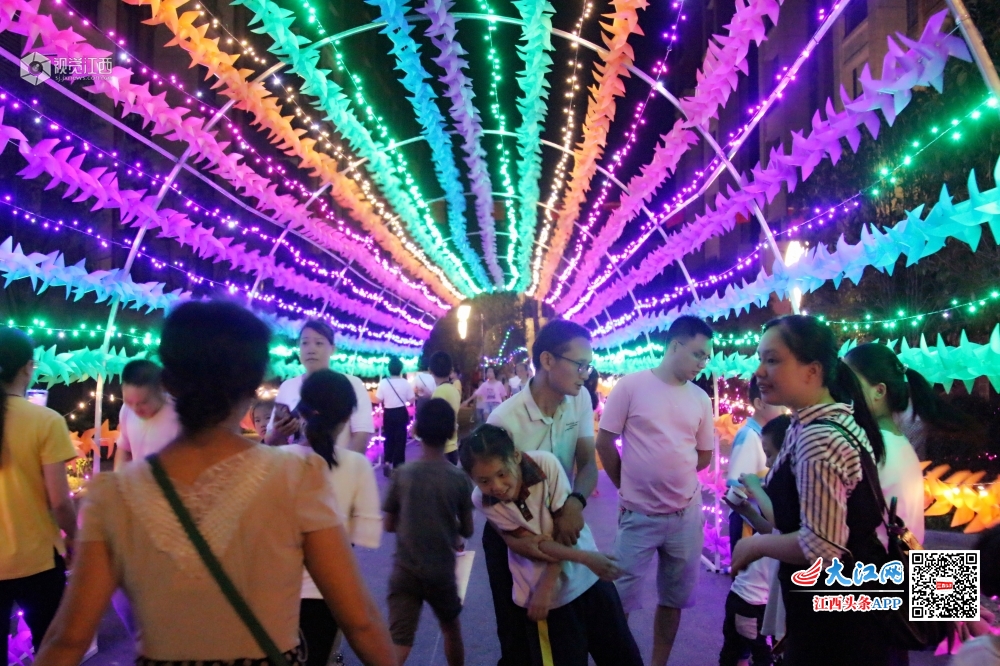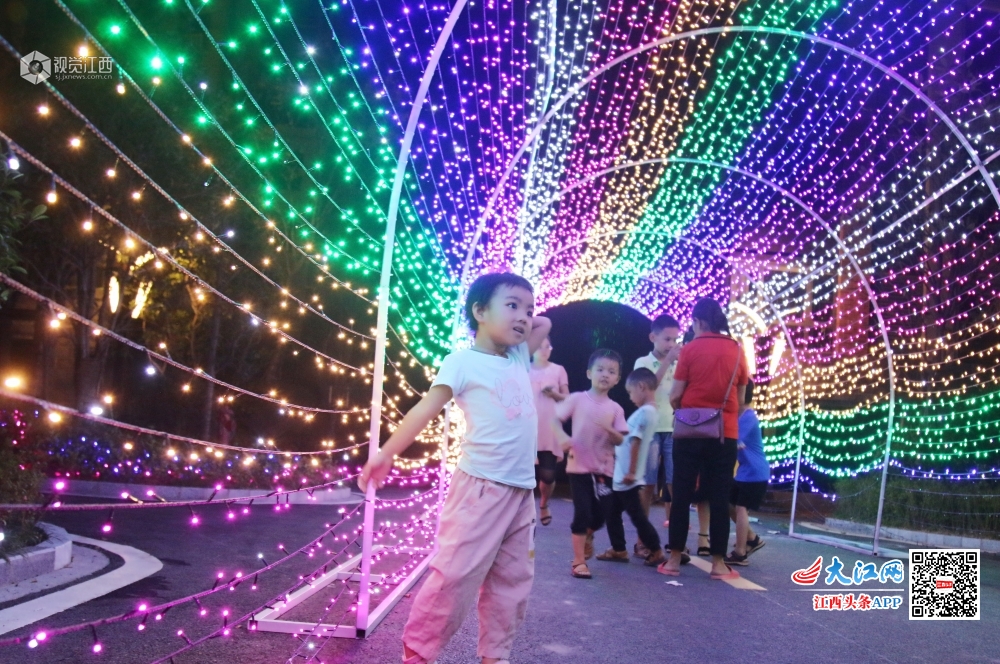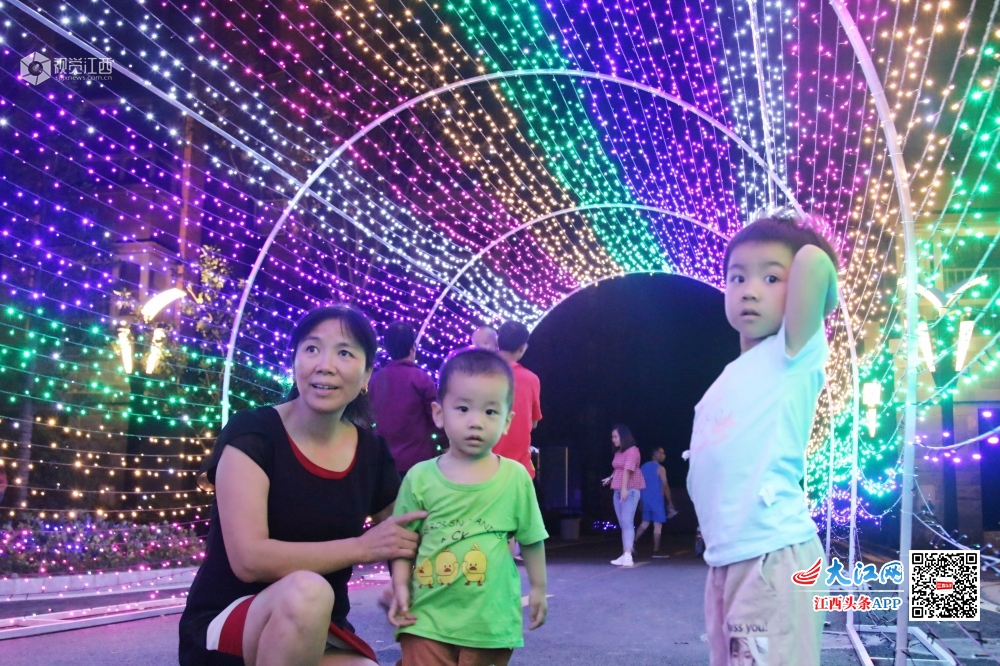 2019年10月4日,江西省遂川县市民们在金域首府小区里观看美轮美奂的夜景灯光秀。十一长假期间,江西省遂川县在广场、街道、小区,每晚到处上演出精致的小型灯光景观秀,演绎一幅美轮美奂的画面,呈现出一派喜庆祥和、国泰民安的国庆氛围,市民们一饱眼福。