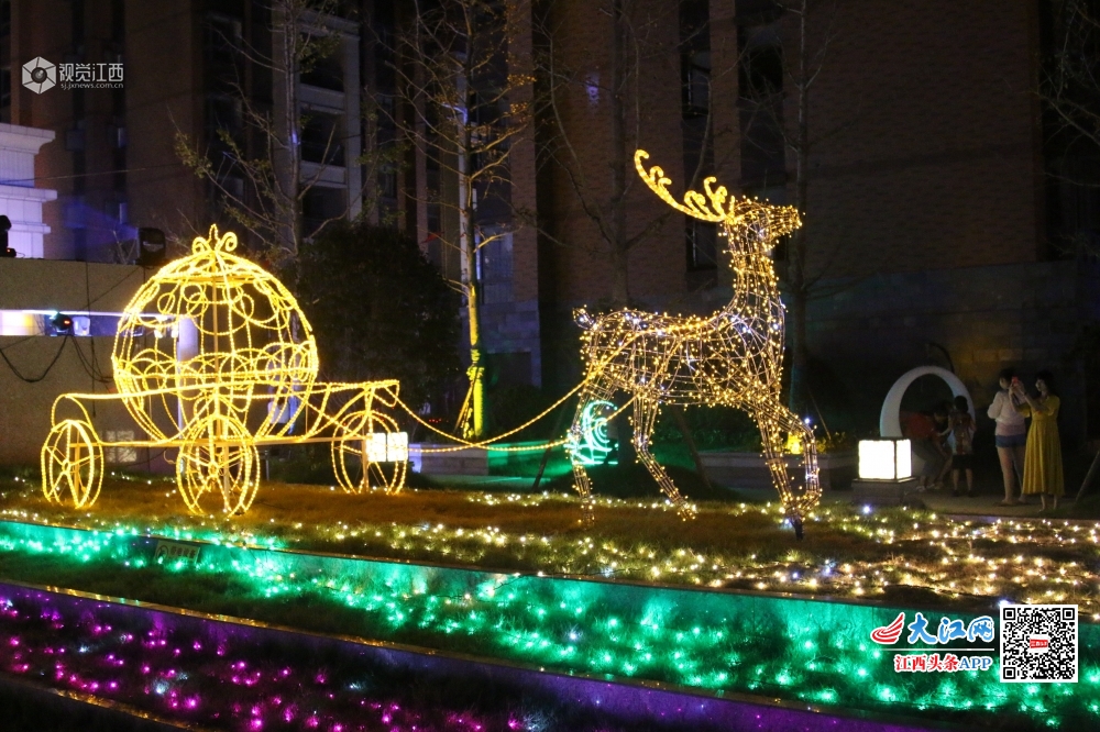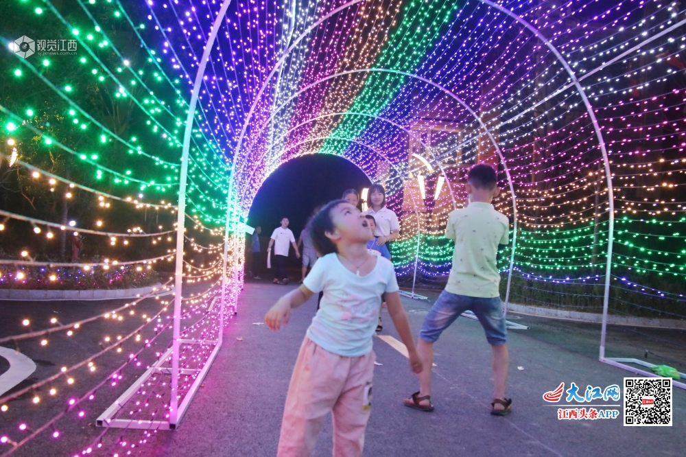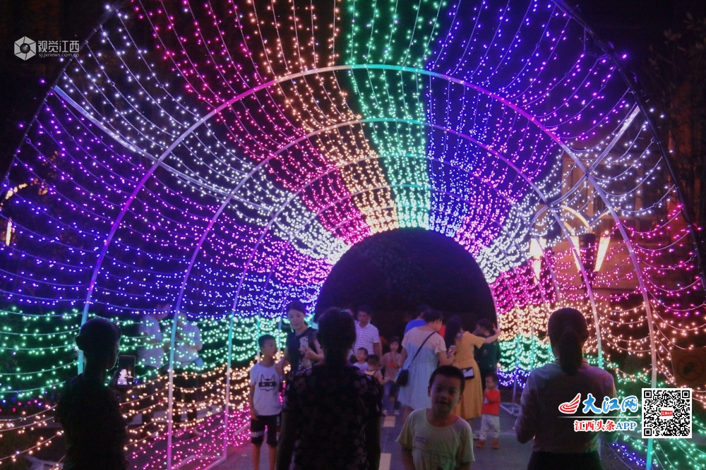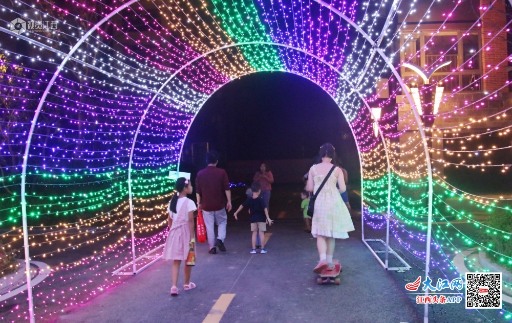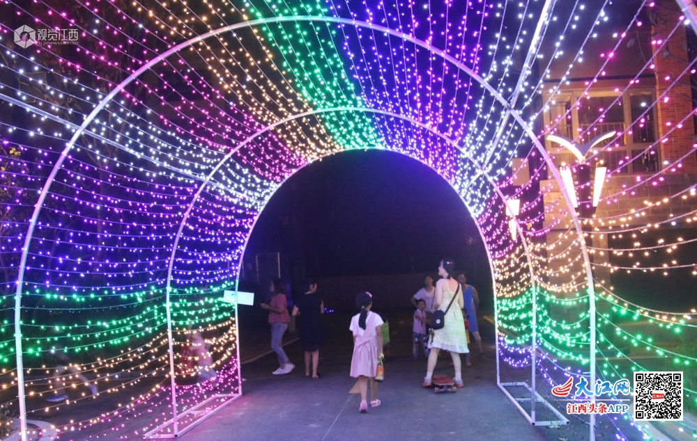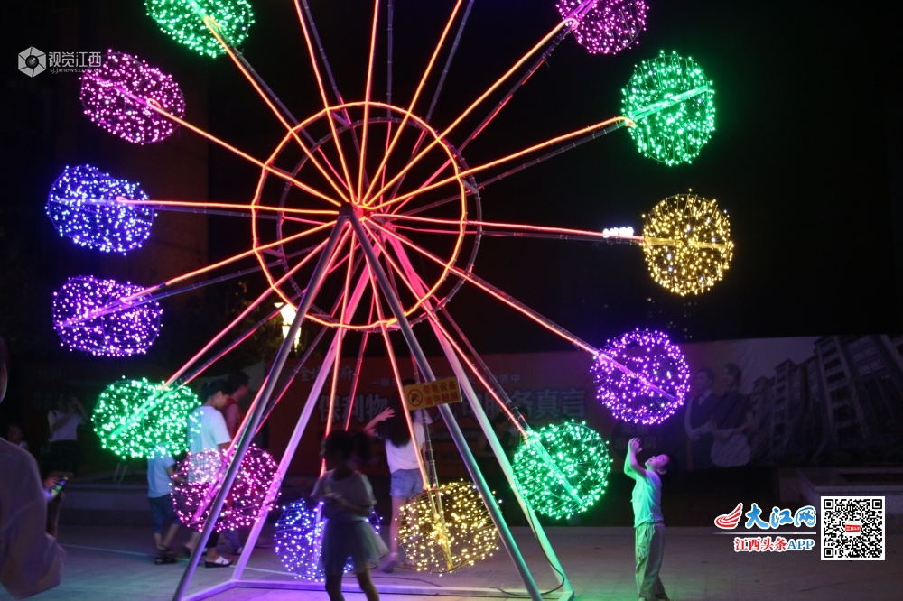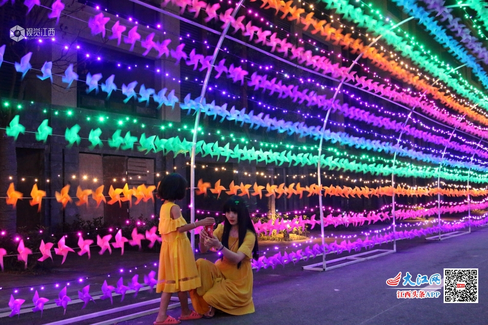 2019年10月4日,江西省遂川县市民们在金域首府小区里观看美轮美奂的夜景灯光秀。十一长假期间,江西省遂川县在广场、街道、小区,每晚到处上演出精致的小型灯光景观秀,演绎一幅美轮美奂的画面,呈现出一派喜庆祥和、国泰民安的国庆氛围,市民们一饱眼福。