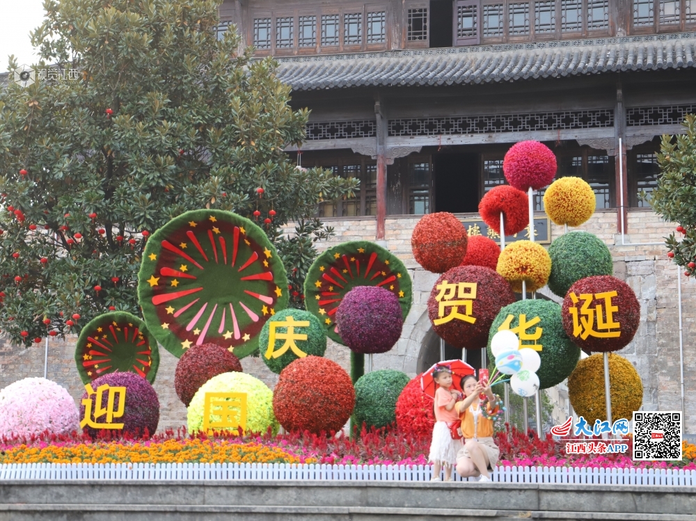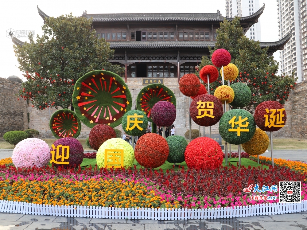据了解,包括袁州谯楼在内,宜春市园林局统一进行规划设计,在中心城区36个重要节点以各色绿雕、小品、绢花、国旗等元素营造喜庆、祥和的节日氛围,成为许多游客的“打卡”景点。